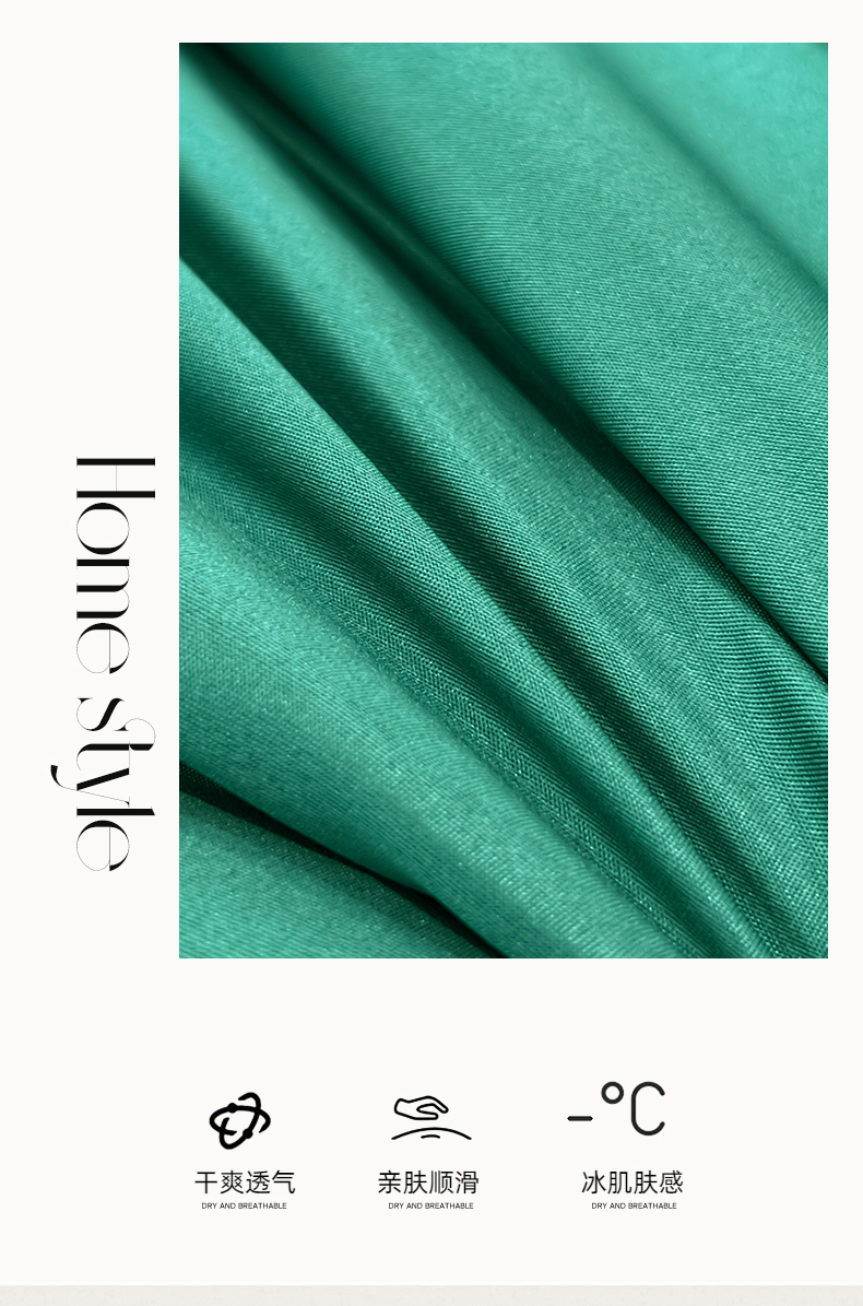 商品名称:梦舒羽 2025新款清凉舒适水洗冰丝双拼亮钻夏被四件套 双拼亮钻松石绿