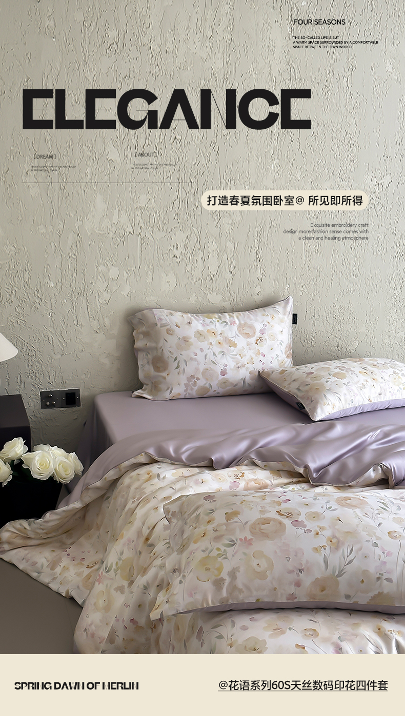 三味舒屋 2025新款花语系列60s天丝数码印花四件套 悦夏