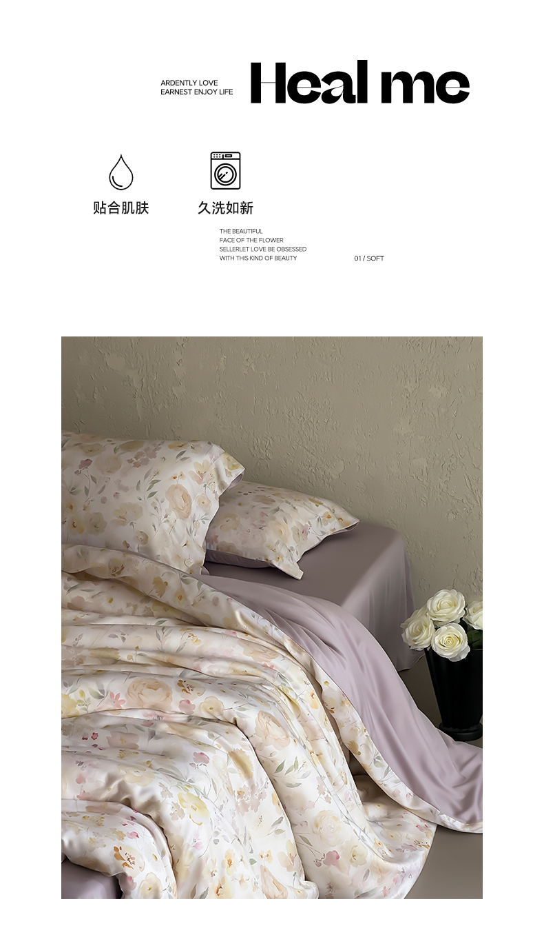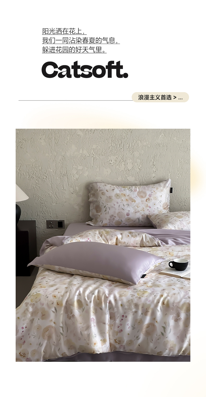 商品名称:三味舒屋 2025新款花语系列60s天丝数码印花四件套 悦夏