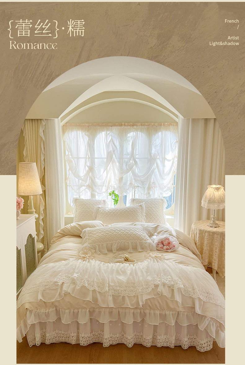 (总)亲亲公主 2025新款全棉法式宽花边四件套-午后佳人,午后佳人