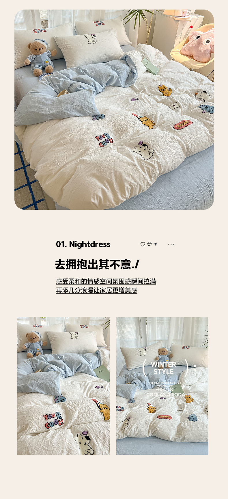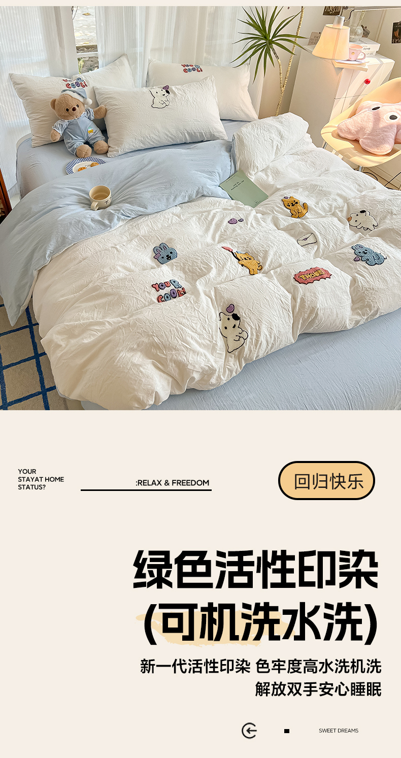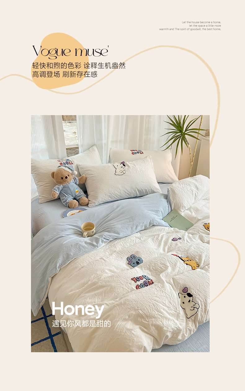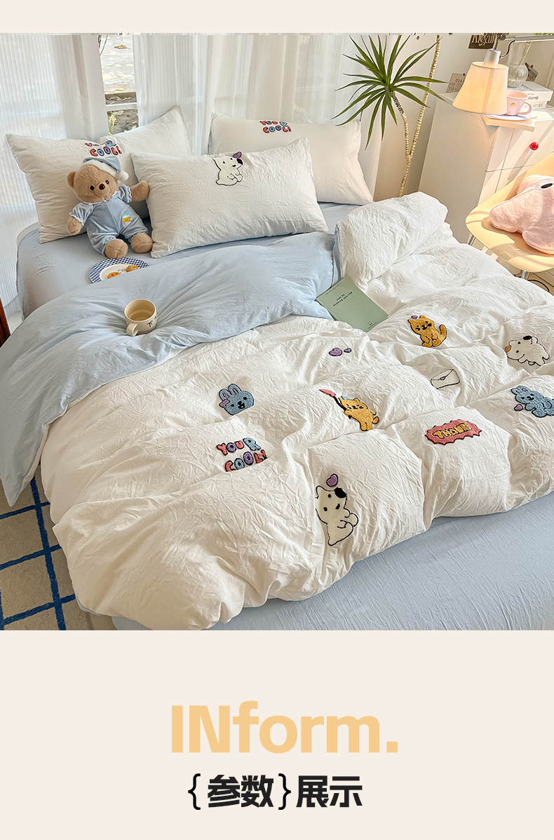 (总)韩巢家纺 2025新款水洗棉大花边被套四件套直播热销款学生宿舍被罩床单三件套(提供卖家秀),春日与玫瑰【大花边款】,繁花似梦【大花边款】,花时宇间【大花边款】,灰蒙小狗【大花边款】,久期诗朵-黄【大花边款】,可可腊肠犬【大花边款】,奶油樱桃【大花边款】,软糖猫【大花边款】,甜樱恋曲【大花边款】,温暖粉心【大花边款】,小花野-紫【大花边款】,小熊冰淇淋【大花边款】,星梦蝶结【大花边款】,幸运可爱兔【大花边款】,摘樱桃的小熊【大花边款】