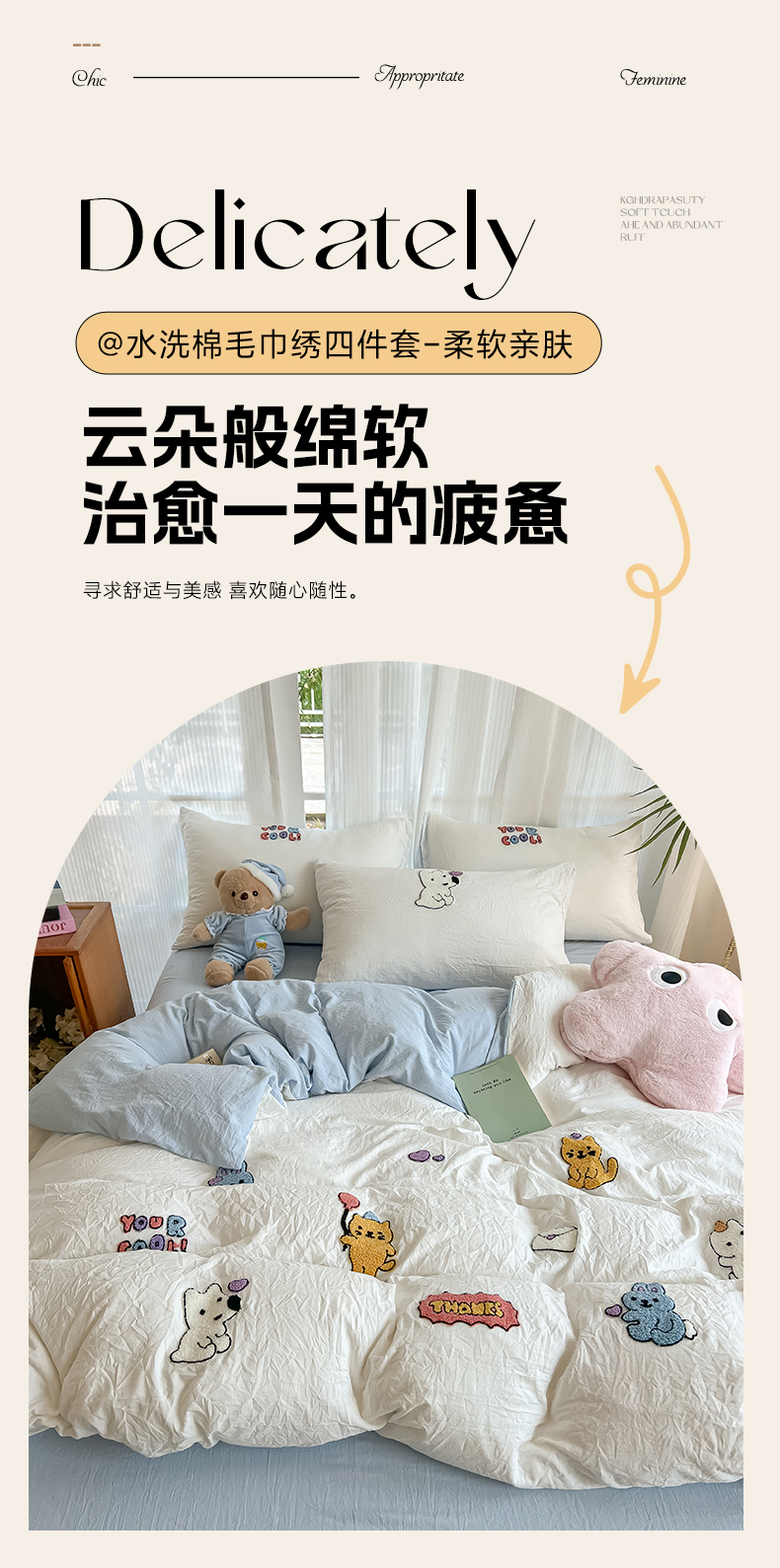 商品名称:(总)韩巢家纺 2025新款超柔水洗棉毛巾绣四件套