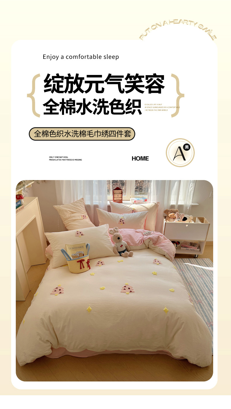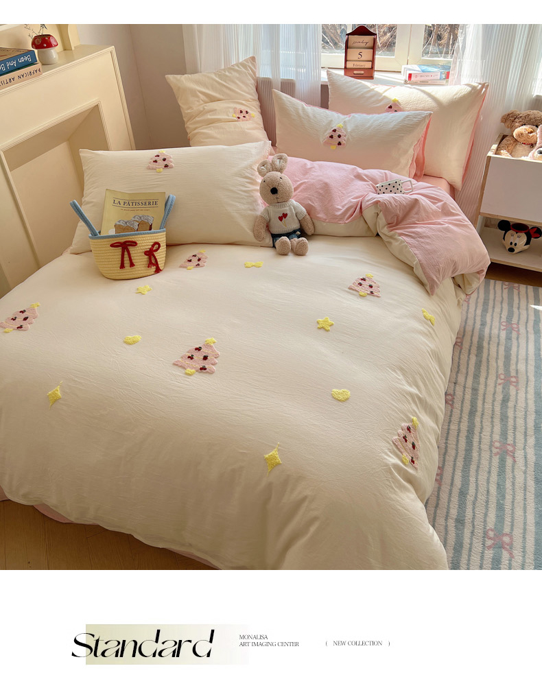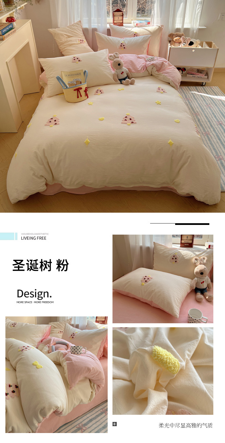 当前位置: 91家纺网 > 商品网购 > 床品套件 > 四件套 > 水洗棉四件套 > 慕尚家纺 2025新款春夏新款色织水洗棉毛巾绣四件套 圣诞树 粉