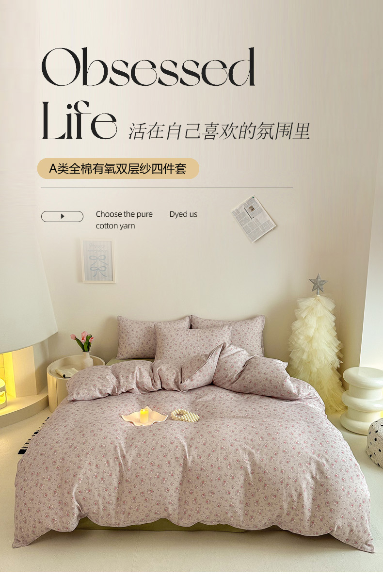 当前位置: 91家纺网 > 商品网购 > 床品套件 > 四件套 > 全棉普通四件套 > 塞纳 2026新款.全棉有氧双层纱四件套-场景一 醉花颜-浅咖