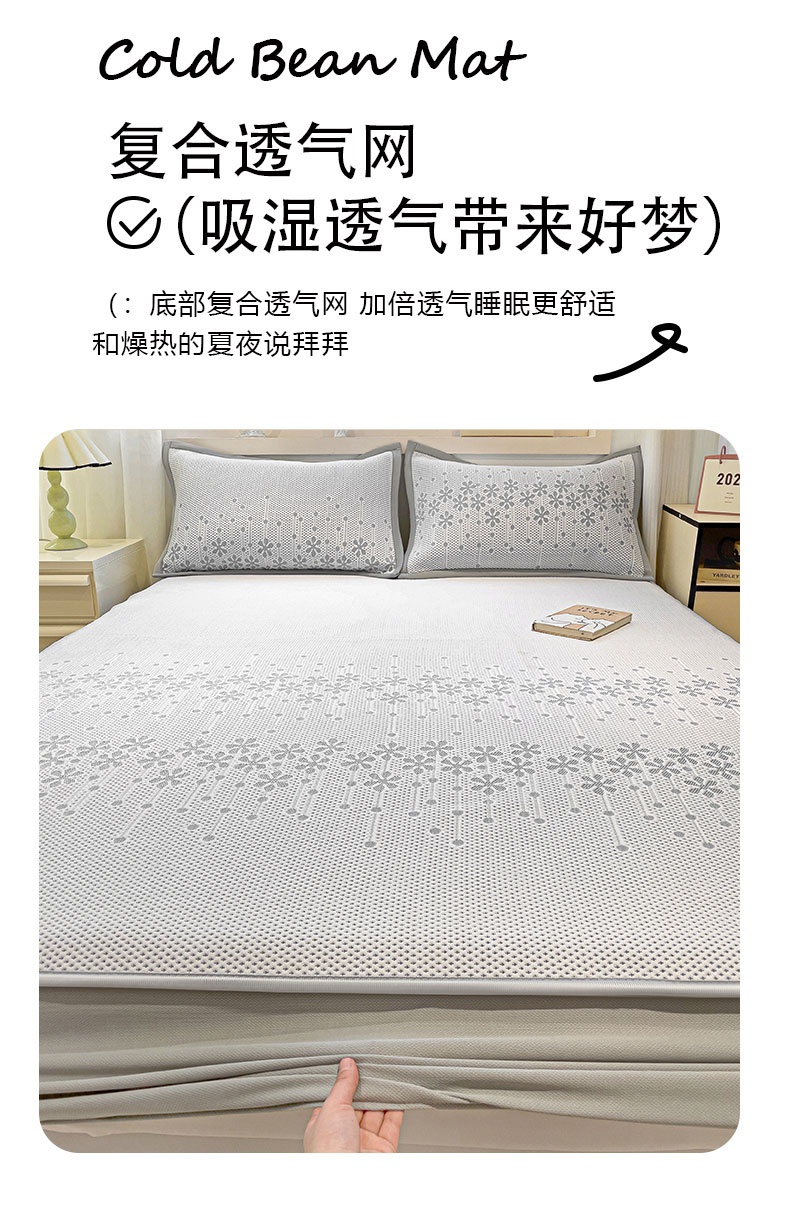 • 91家纺网 家纺一手货源 找家纺 富馨莱 2025新款A类480克PE凉感凉豆豆凉席三件套和单件床笠款 熊猫嘟嘟-蓝