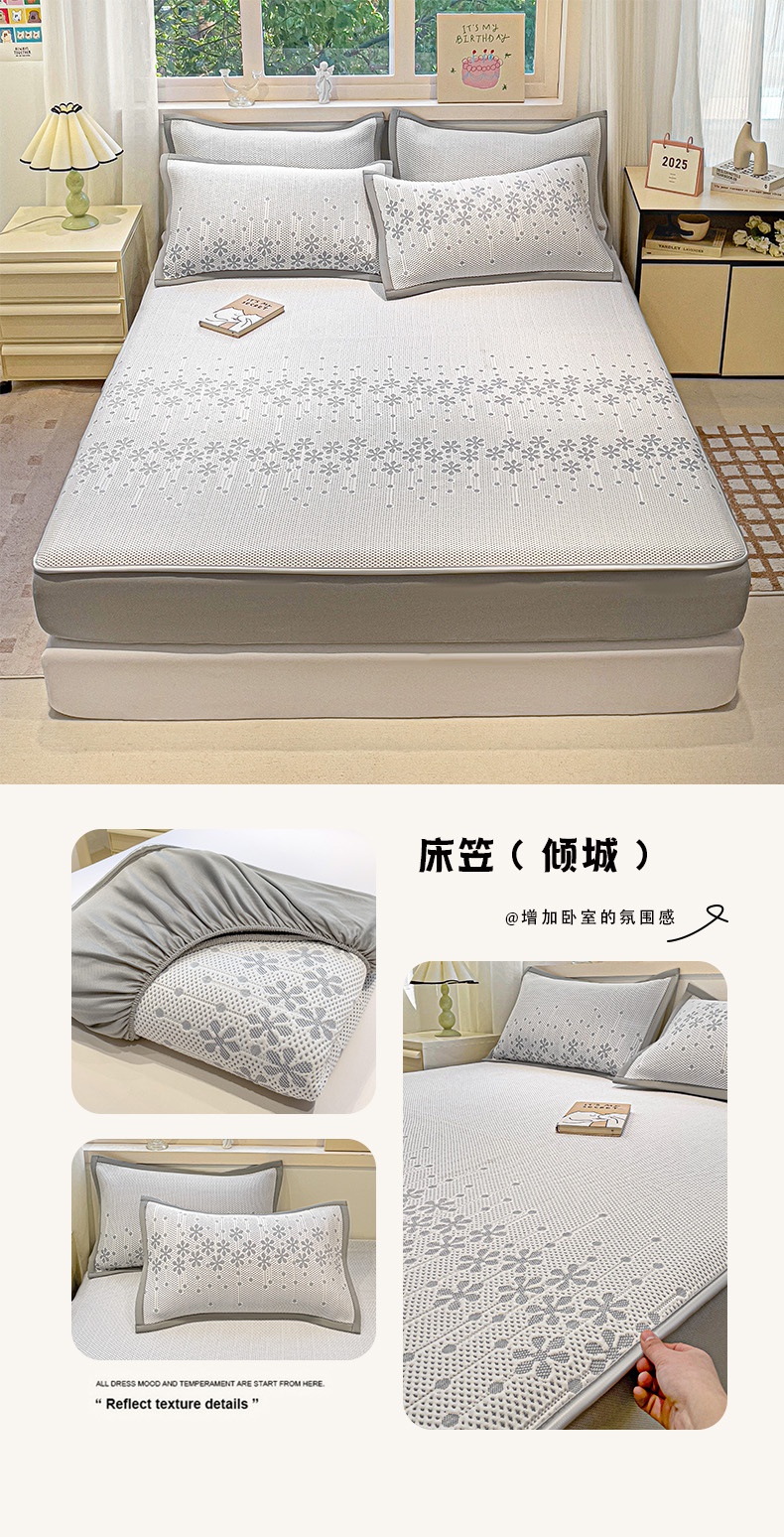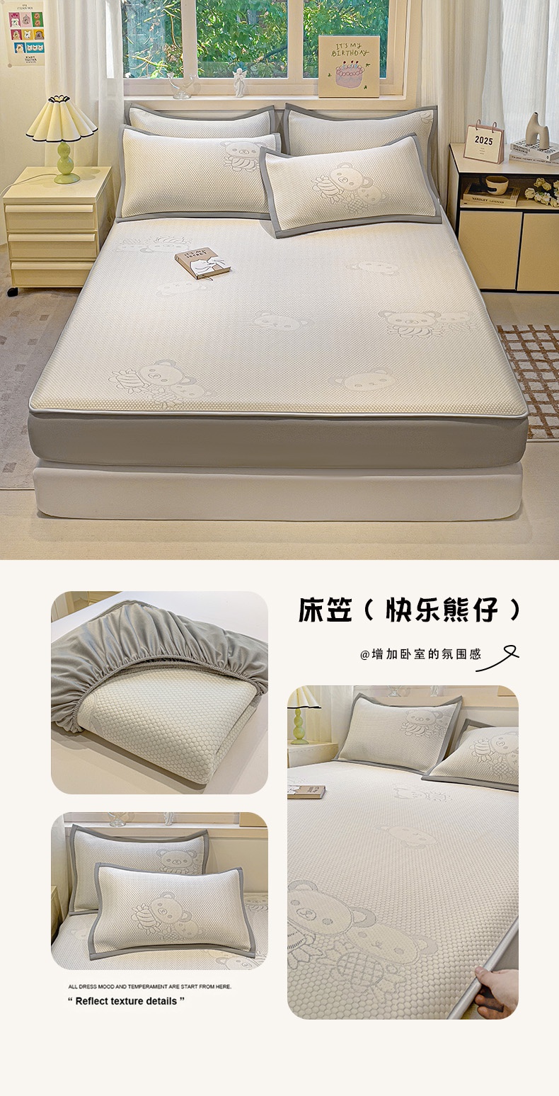 富馨莱 2025新款A类480克PE凉感凉豆豆凉席三件套和单件床笠款 熊猫嘟嘟-蓝