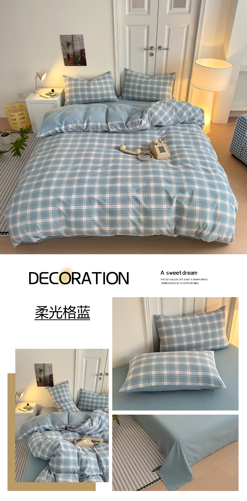当前位置: 91家纺网 > 商品网购 > 床品套件 > 四件套 > 水洗棉四件套 > 玖弘家居 2025新款水洗棉格子系列四件套 柔光格蓝