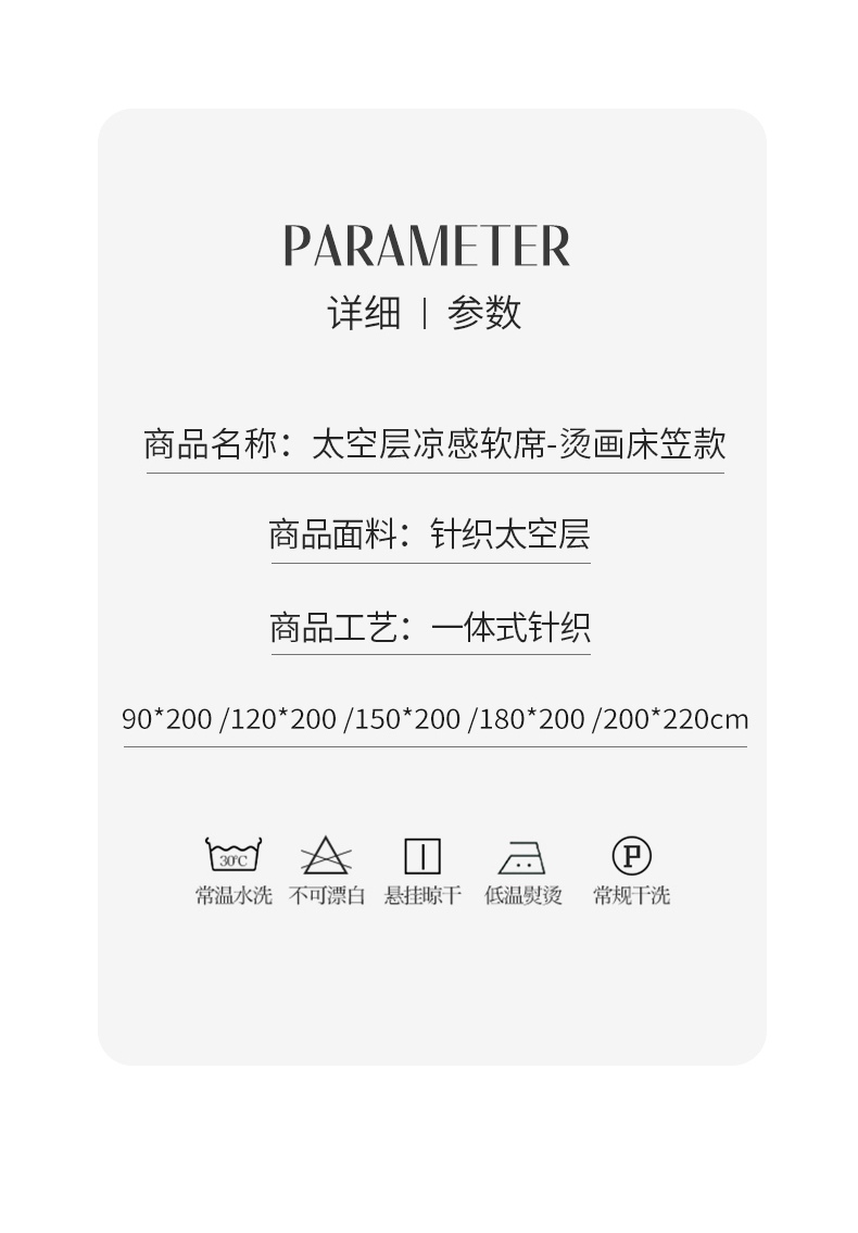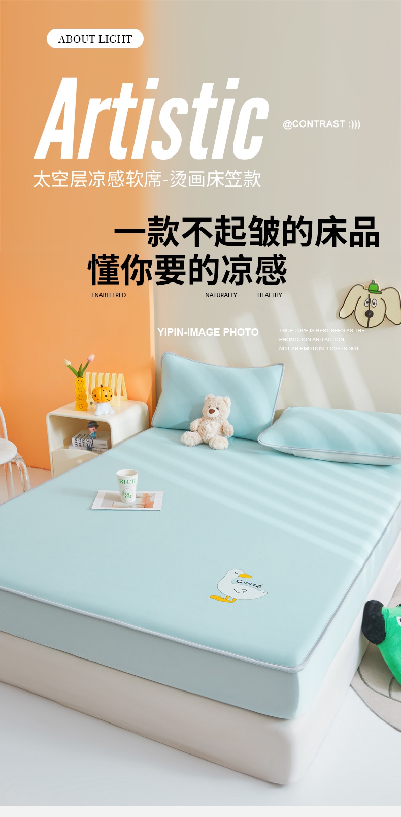 当前位置: 91家纺网 > 商品网购 > 床上用品 > 凉席 > 其他凉席 > 2025春夏新款独家研发太空层凉感鸭冰丝烫画软凉席床笠款 凉感鸭-水绿
