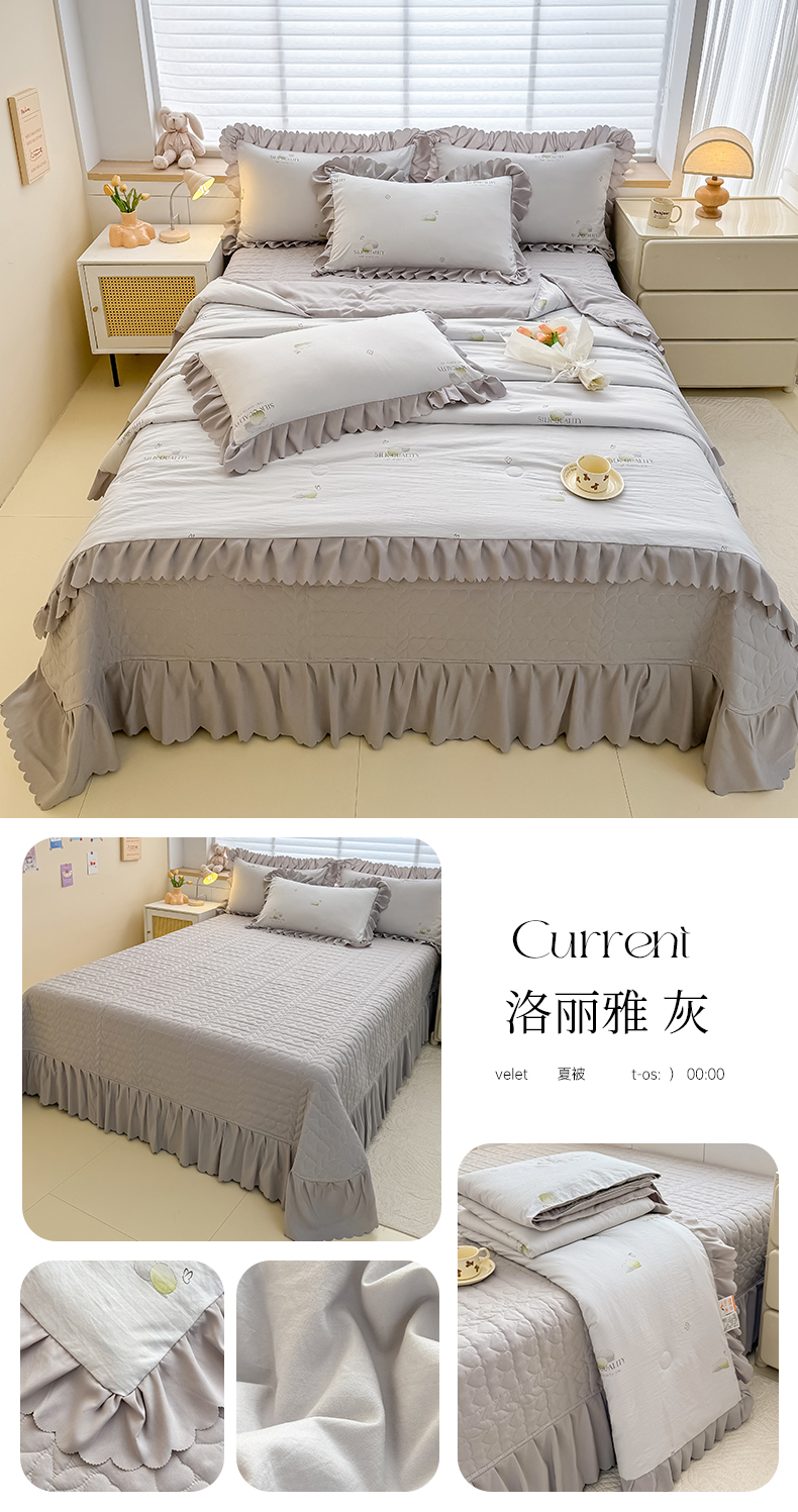 慕克斯 2025新款奶小棉韩版床盖款夏被四件套 洛丽雅-灰