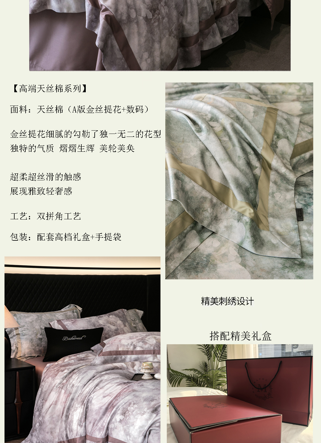 (总)曼布缇 2025新款高端金丝提花数码印花天丝棉四件套(会员-20),绿野仙踪,紫苑仙境