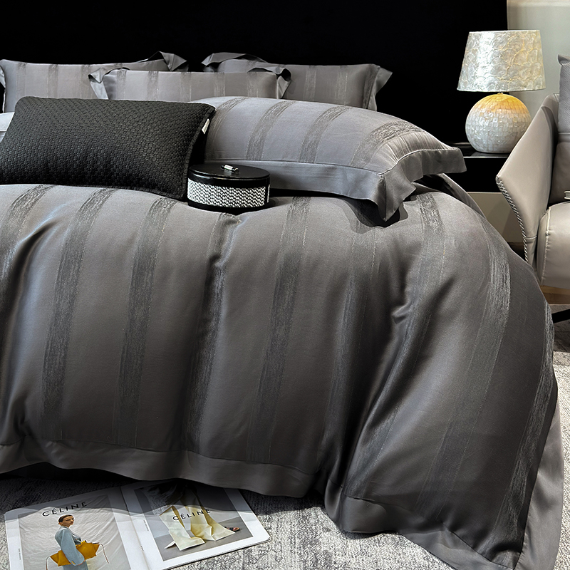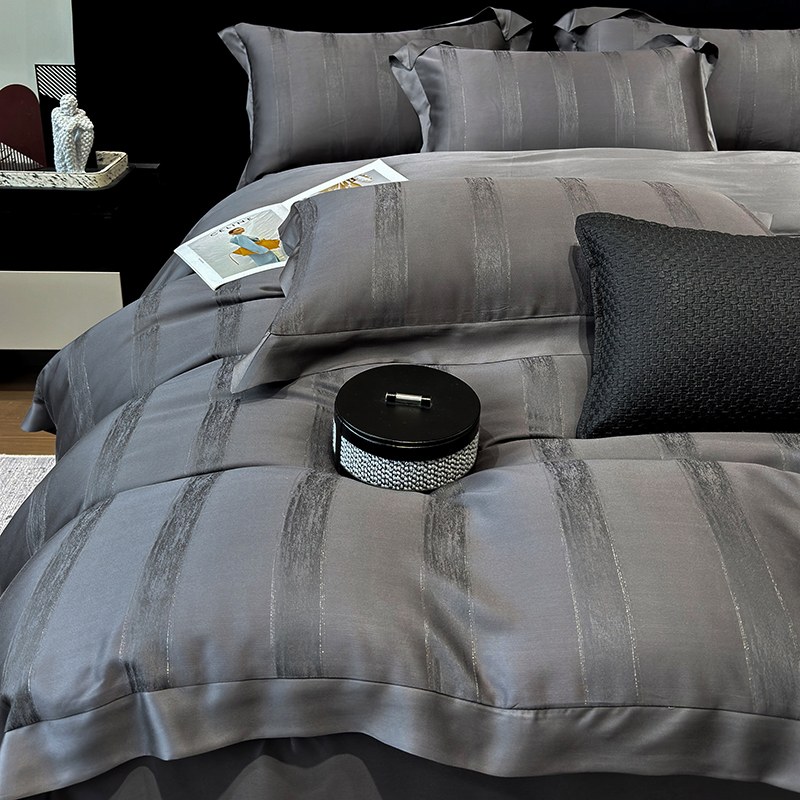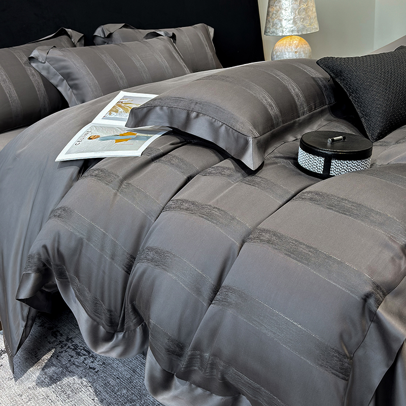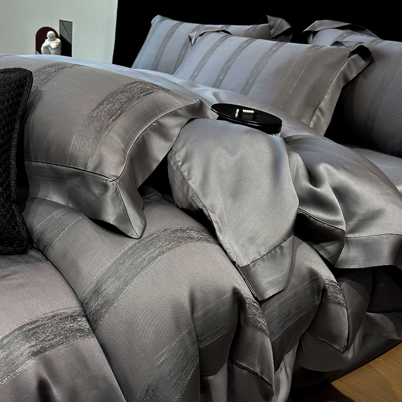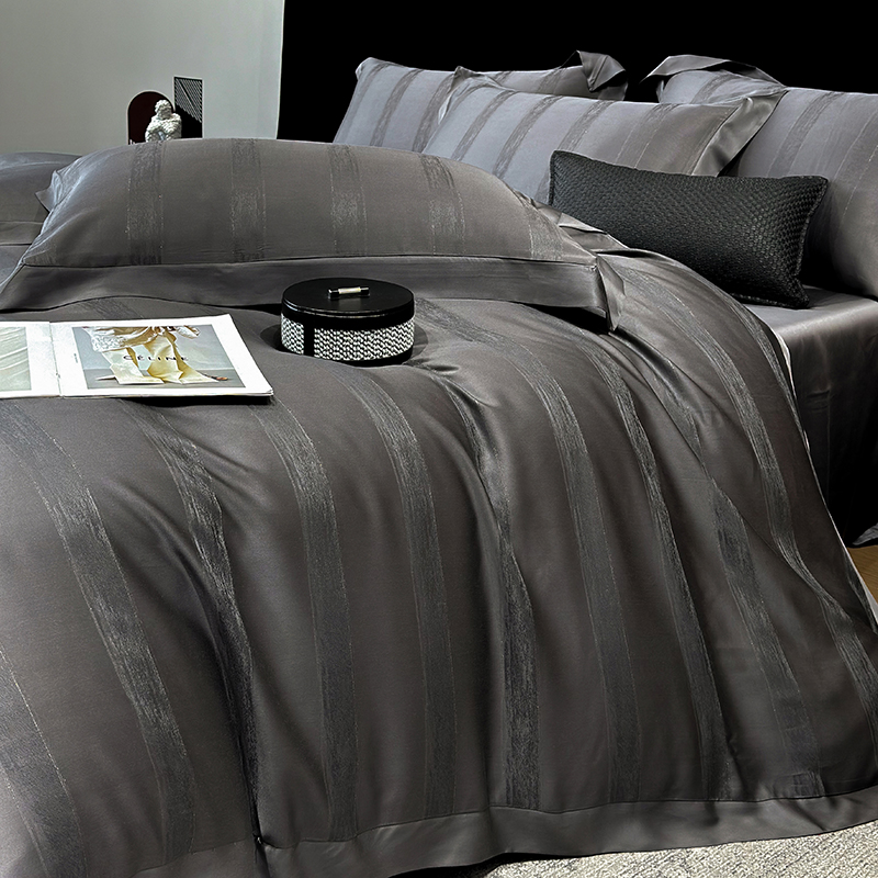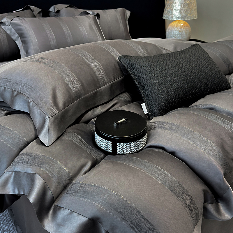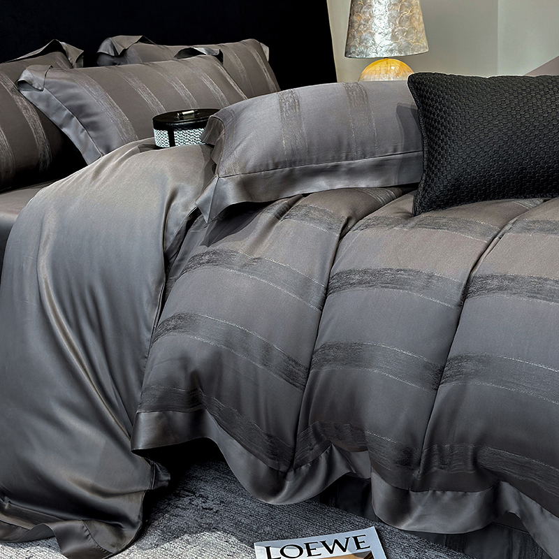 若未家居 LOVEWE HOUSE 2025新款50S兰精天丝轻奢基底提花带银丝套件- 亦梵 亦梵-黑色