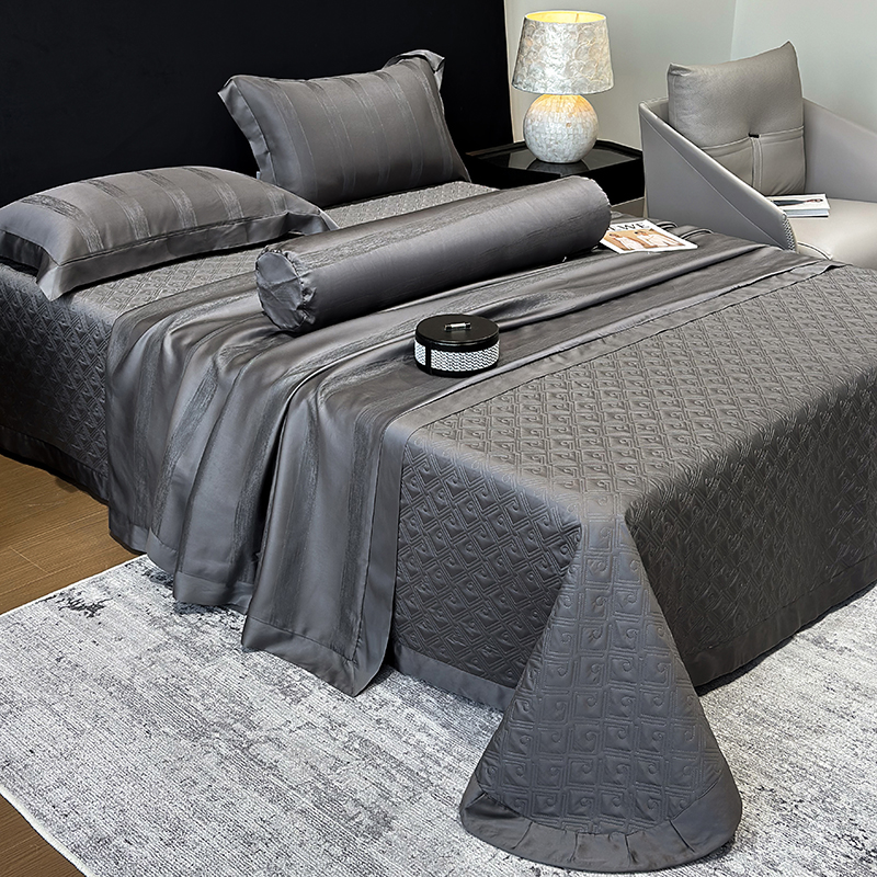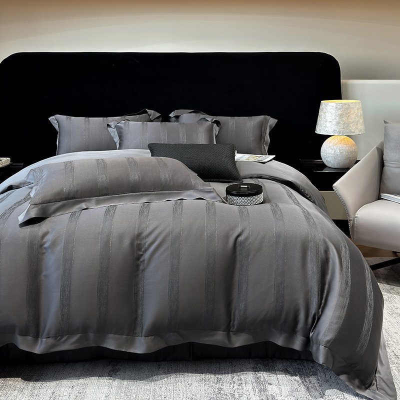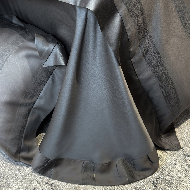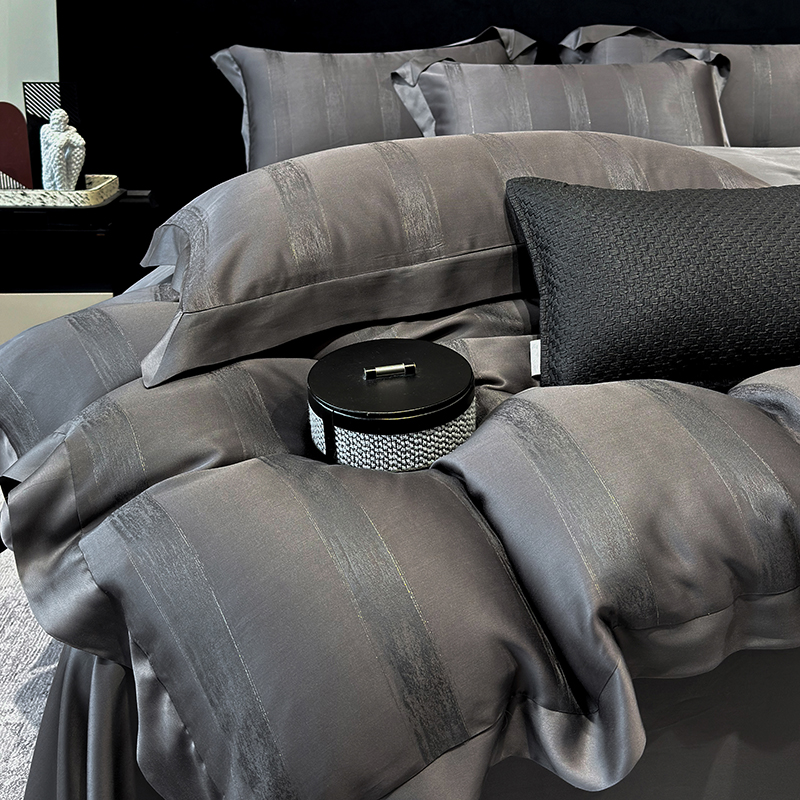 商品名称:若未家居 LOVEWE HOUSE 2025新款50S兰精天丝轻奢基底提花带银丝套件- 亦梵 亦梵-黑色