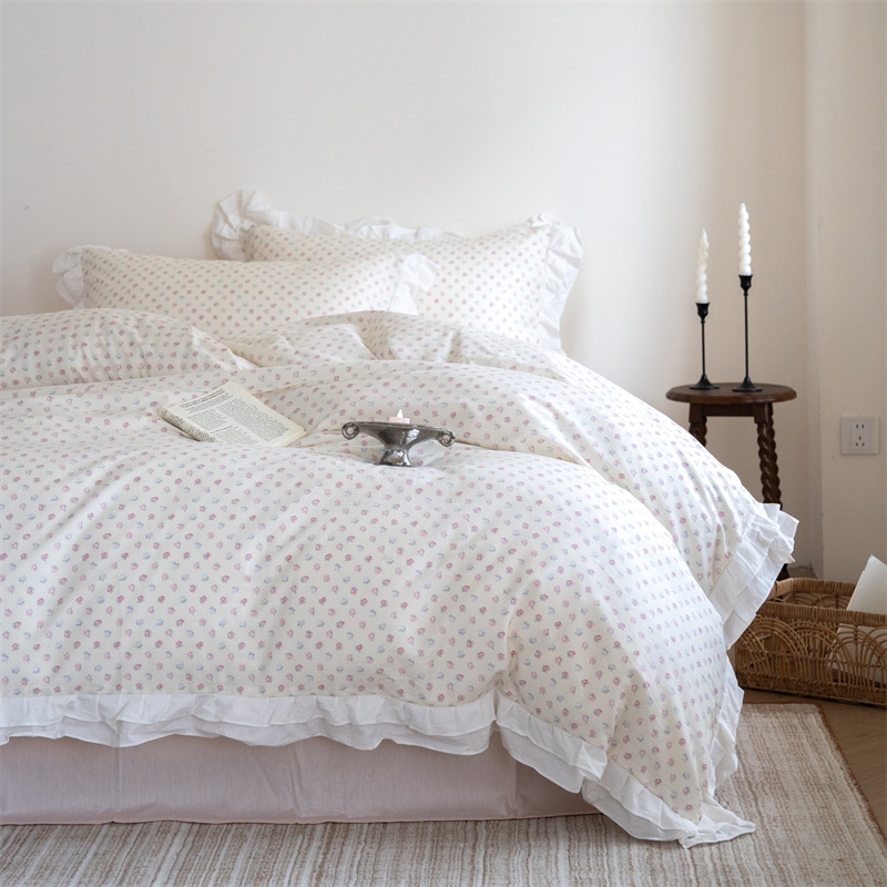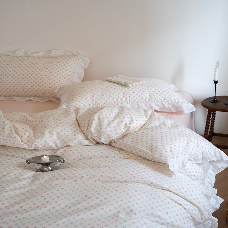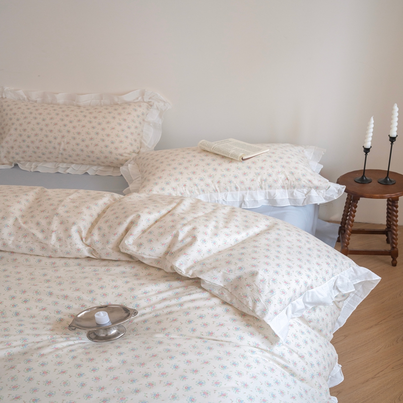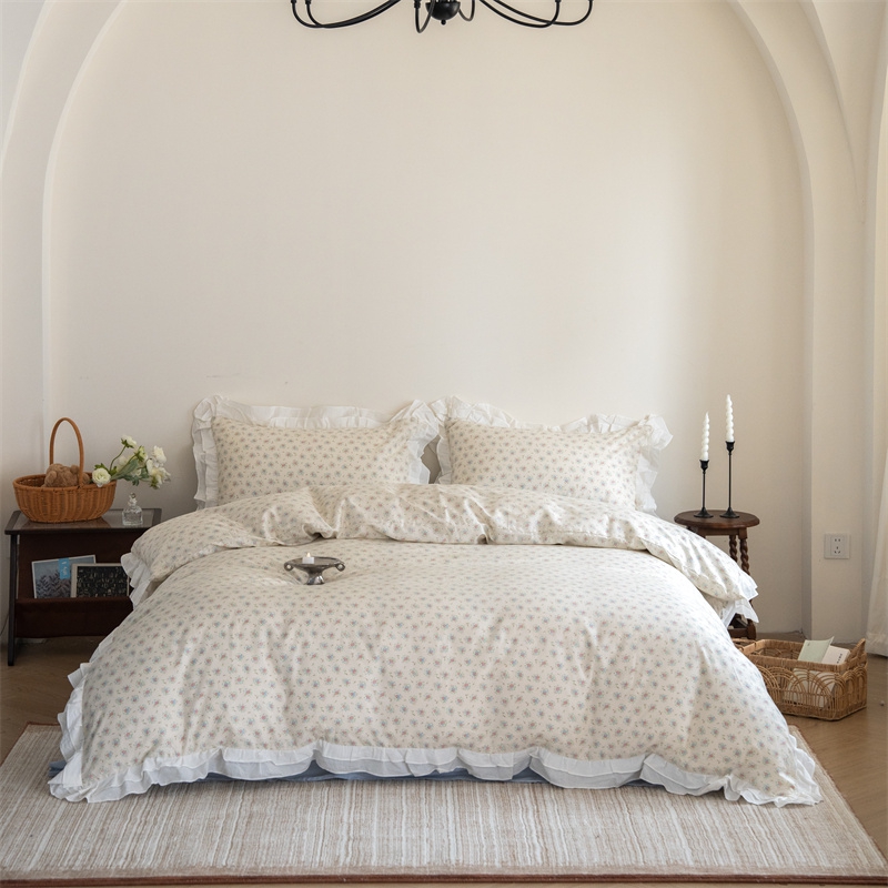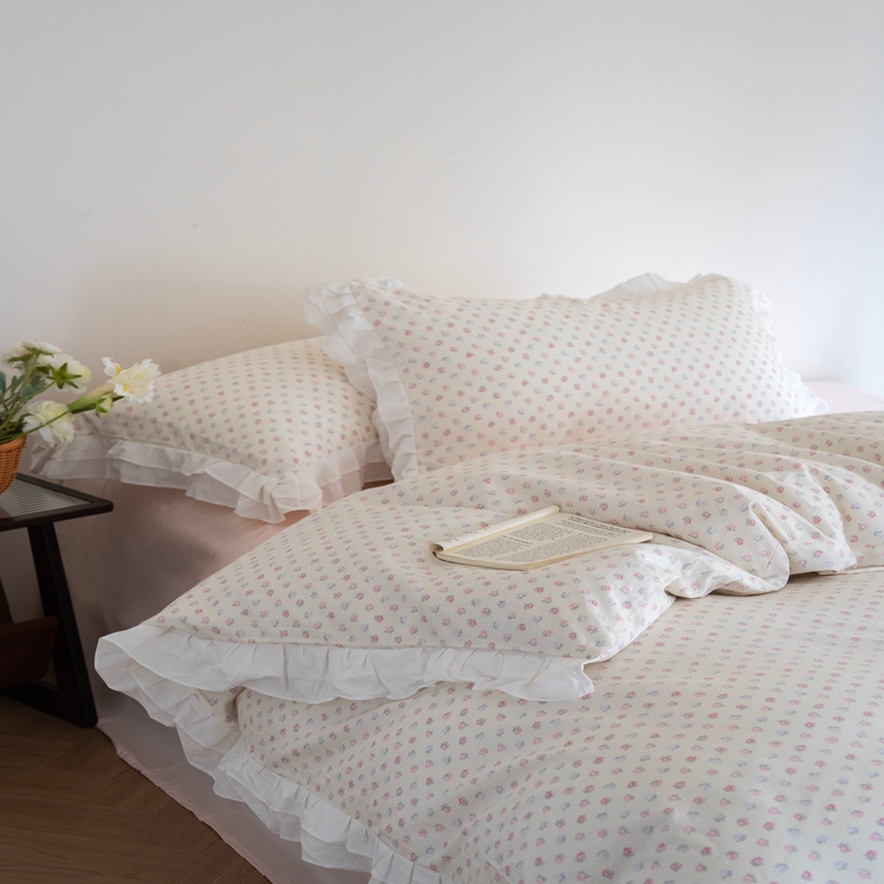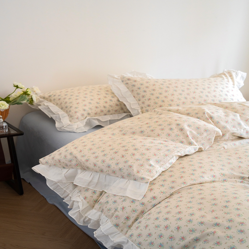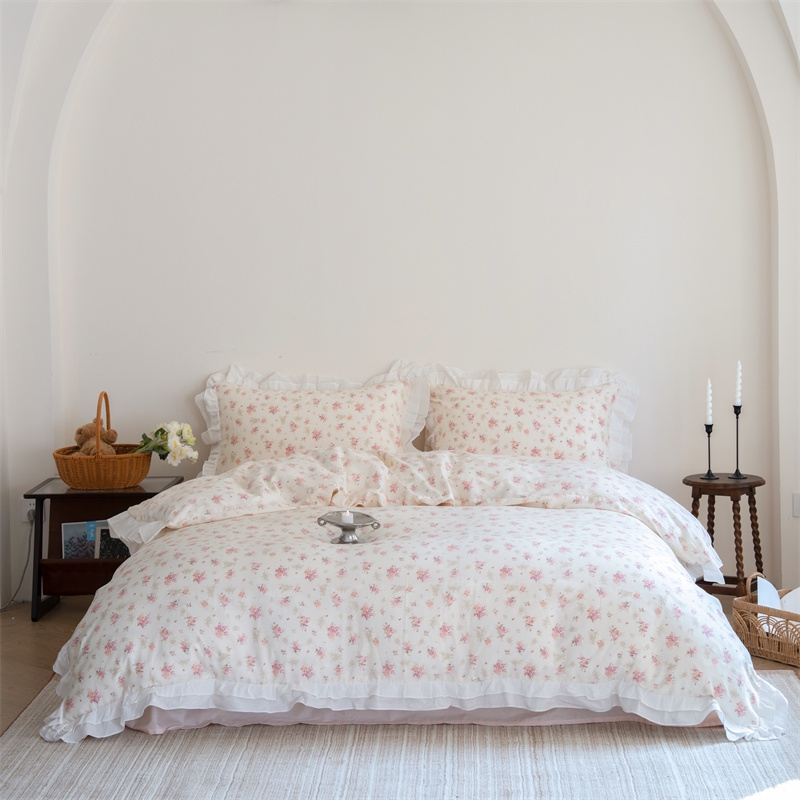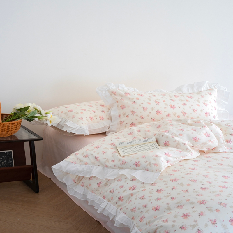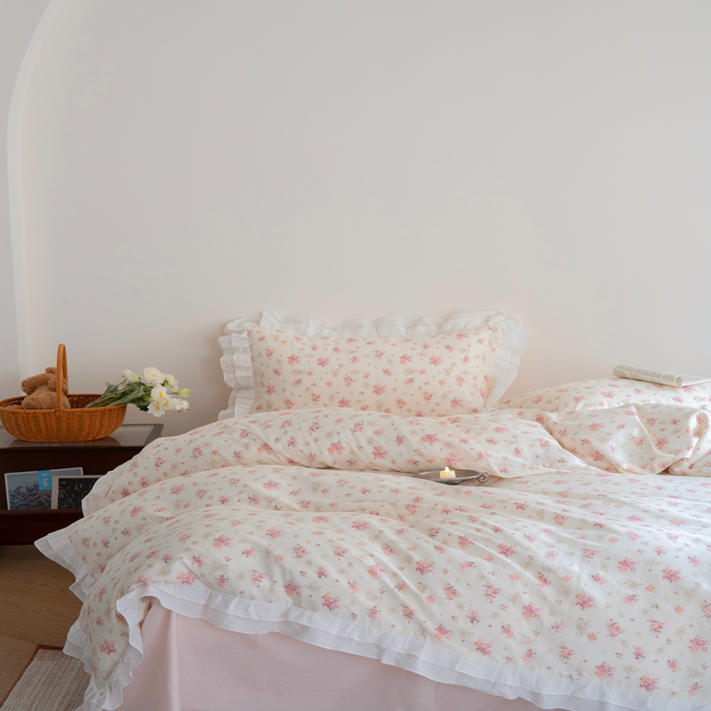 商品名称:(总)尺素 2025新款全棉碎花韩式花边款纯棉四件套纯色加大床单1.8床笠法式大花边被套枕套
