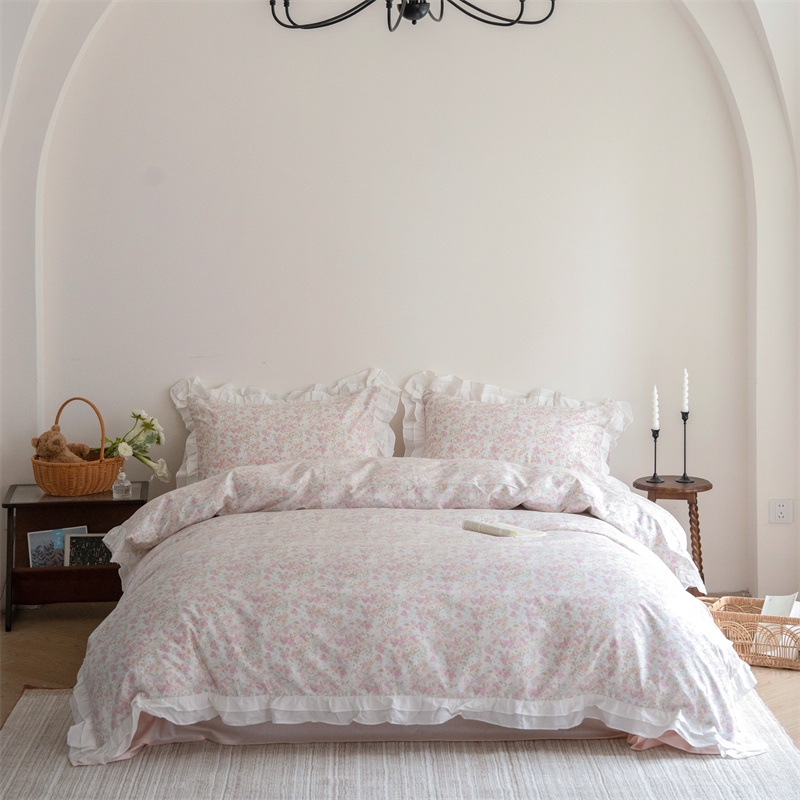 (总)尺素 2025新款全棉碎花韩式花边款纯棉四件套纯色加大床单1.8床笠法式大花边被套枕套