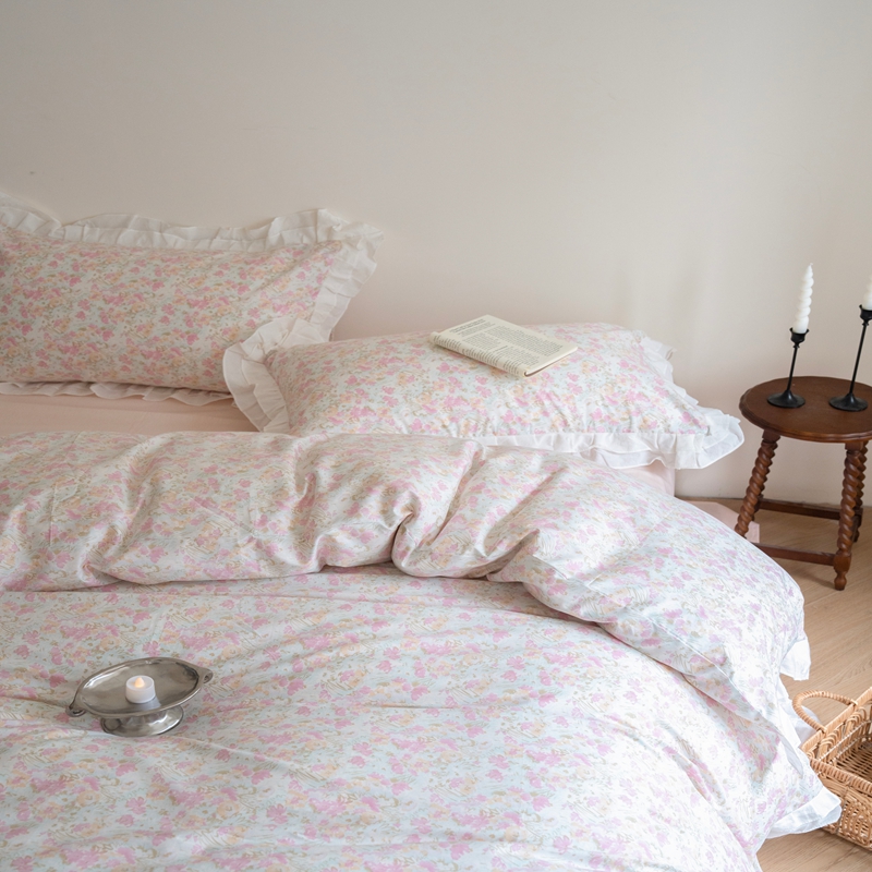 (总)尺素 2025新款田园小清新纯棉四件套出口韩国ins博主风全棉被套纯色加大床单1.8床笠印花枕套学生宿舍三件套,春不晚 桃粉,花似锦 奶白,紫鸢千夏紫