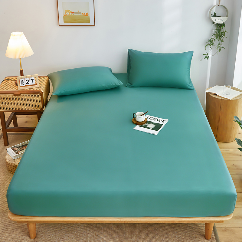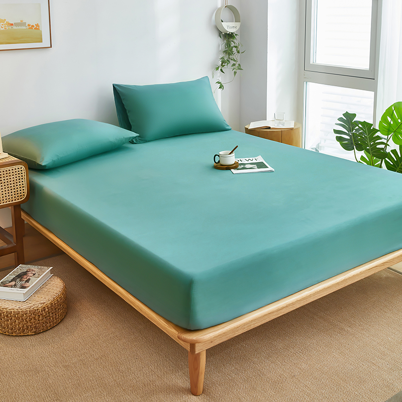 商品名称:艾橙家纺 2025新款正宗133x72喷气织造全棉纯棉纯色床笠三件套 浅石兰