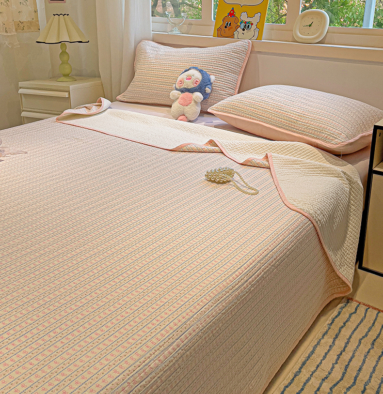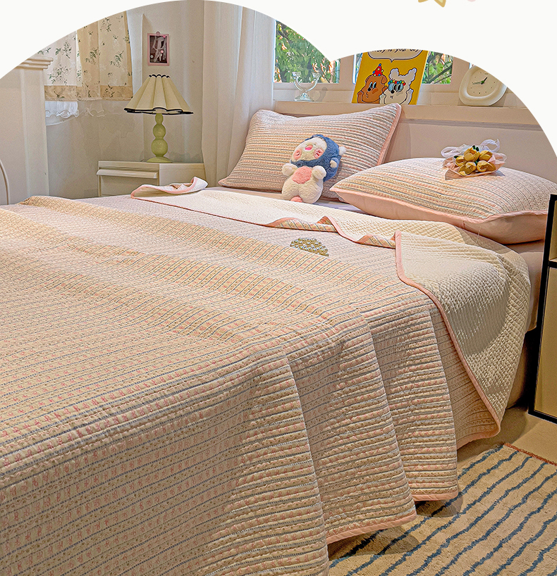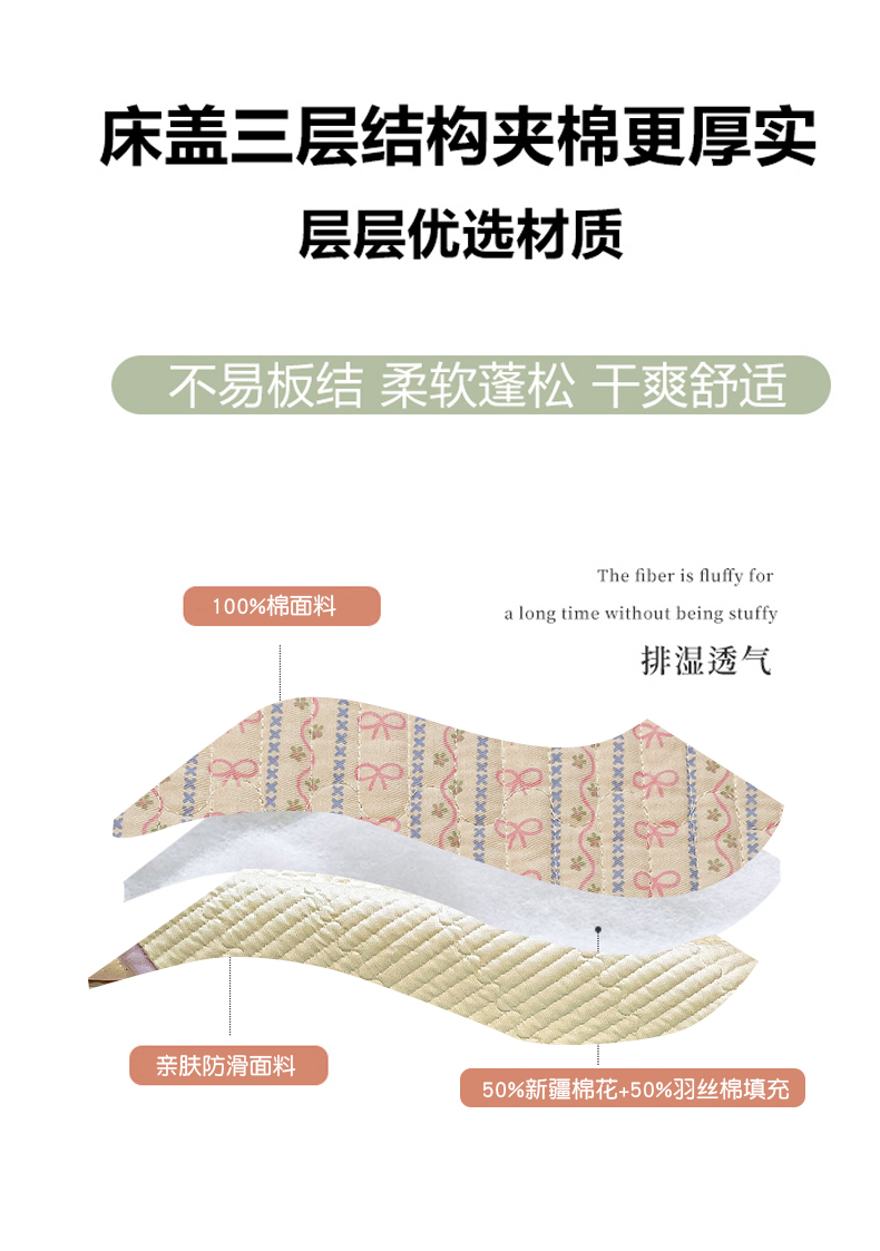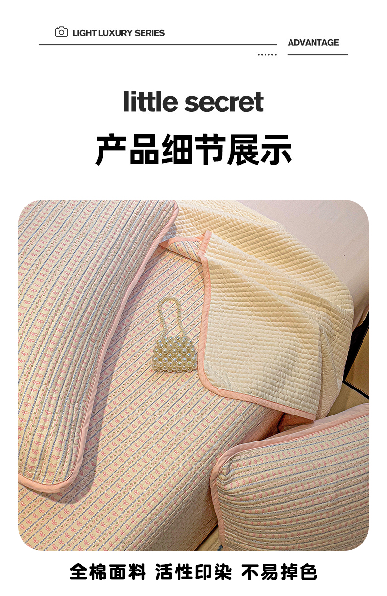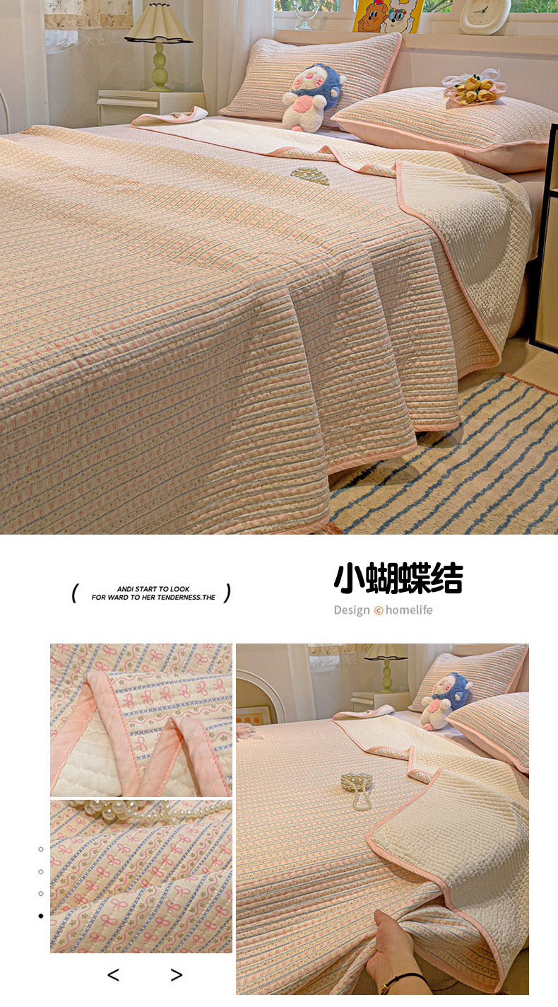 • 91家纺网 家纺一手货源 找家纺 漫时光 2025新款全棉纯棉新疆棉花夹层单床盖 小蝴蝶结