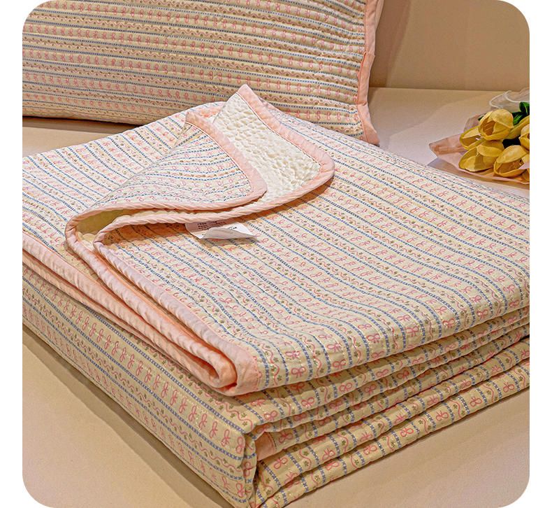 漫时光 2025新款全棉纯棉新疆棉花夹层单床盖 小蝴蝶结
