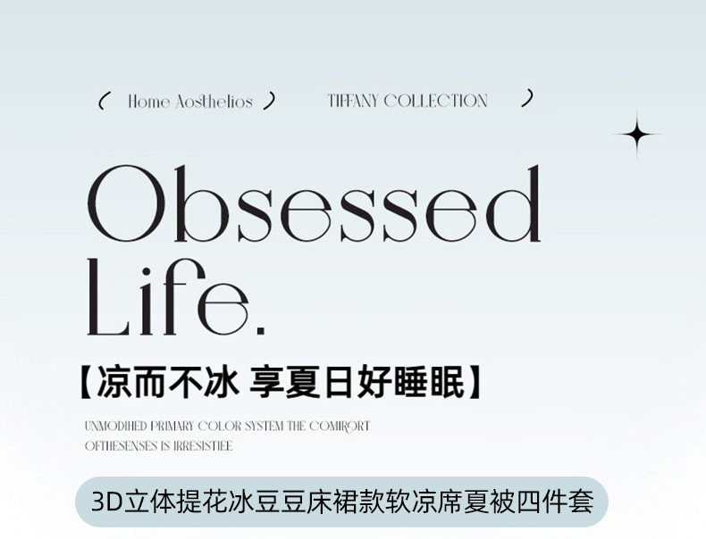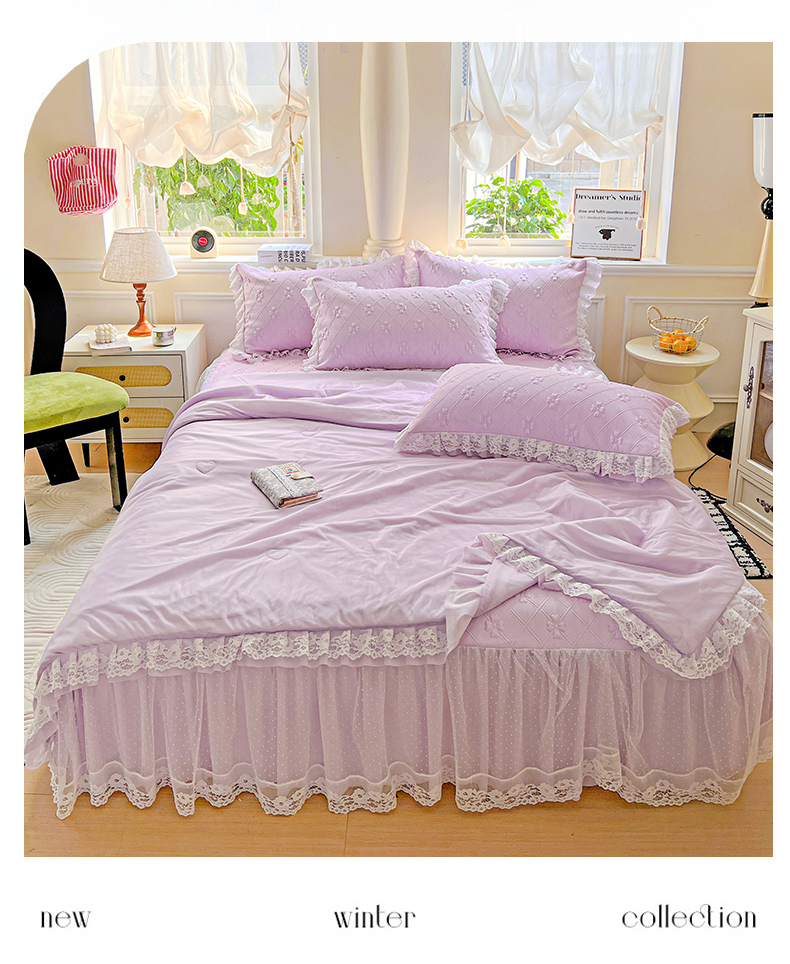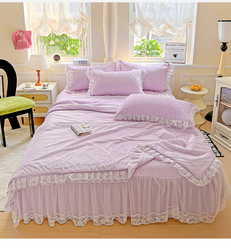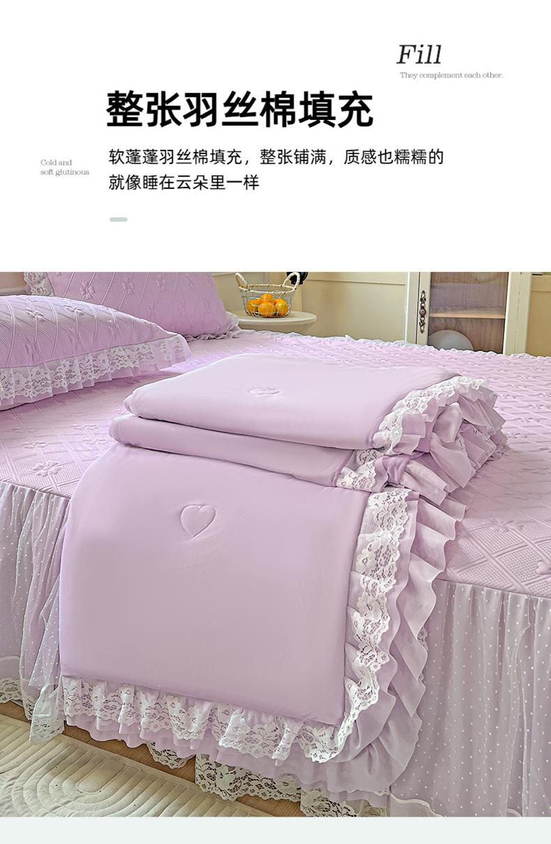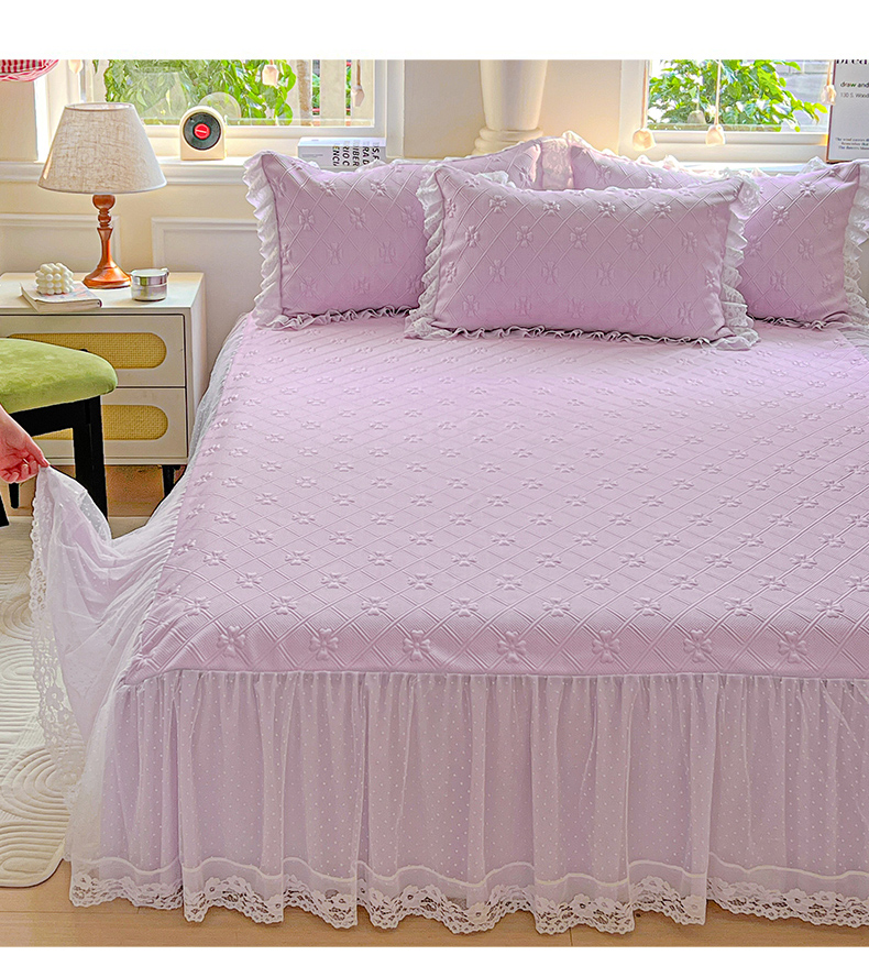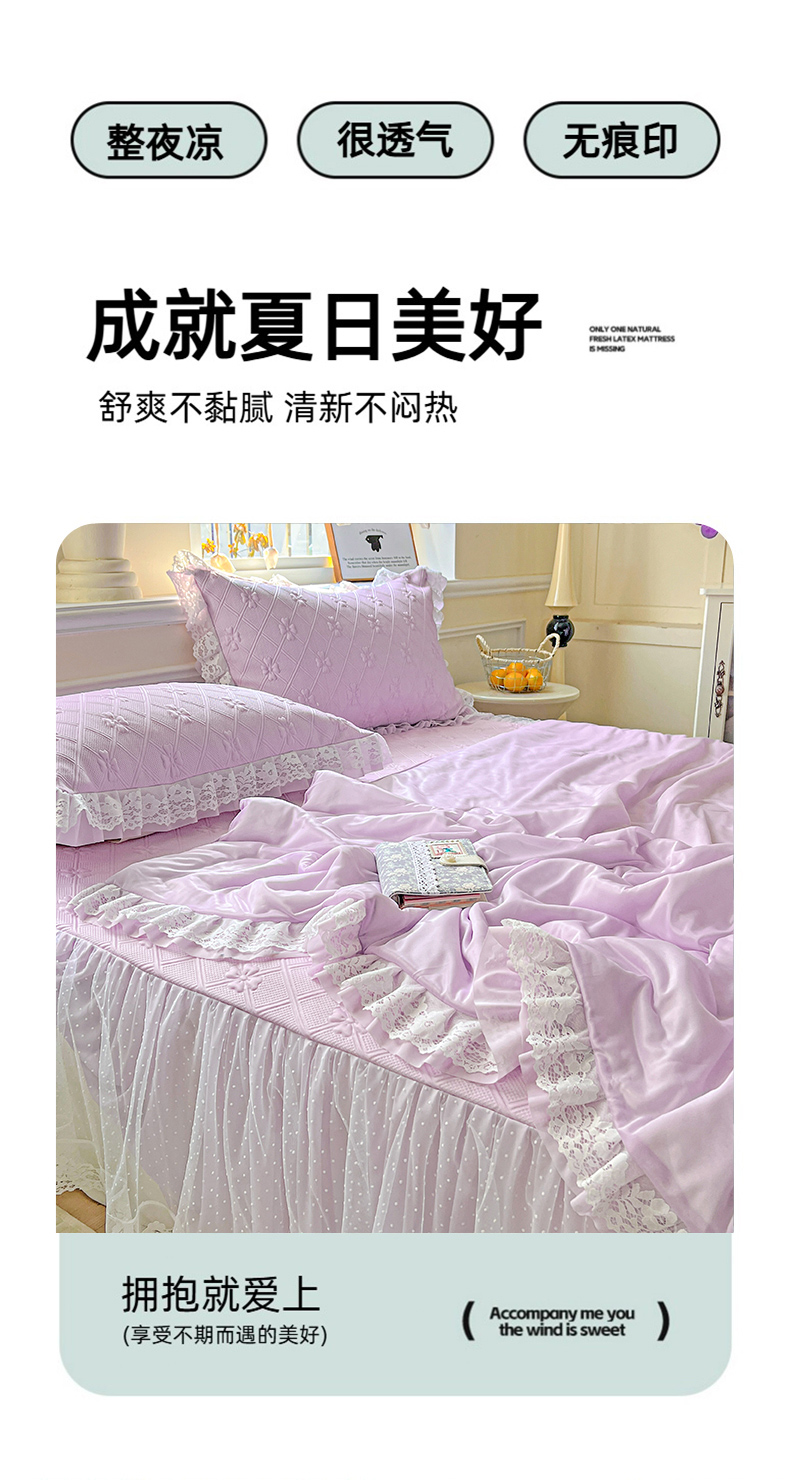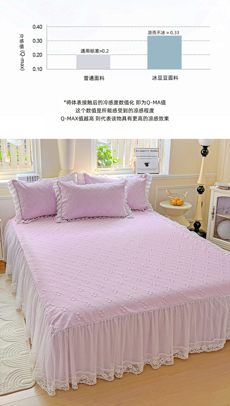 创爱家纺 2025新款3D提花冰豆豆床裙款凉席夏被四件套 冰豆豆-紫