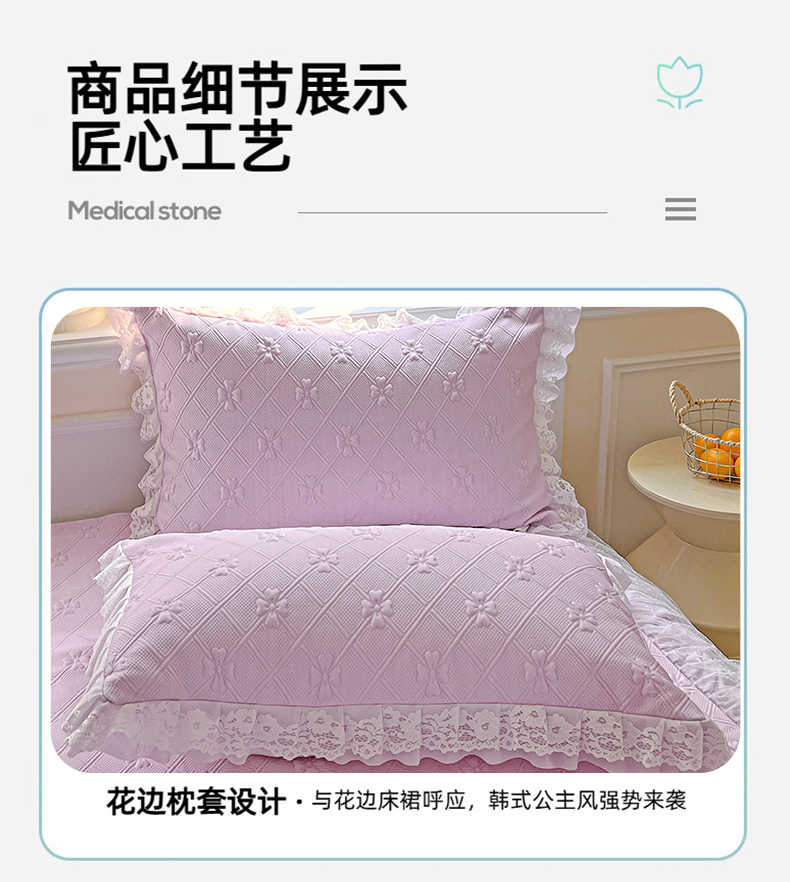 商品名称:创爱家纺 2025新款3D提花冰豆豆床裙款凉席夏被四件套 冰豆豆-紫