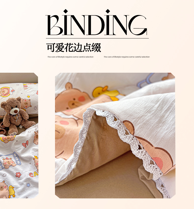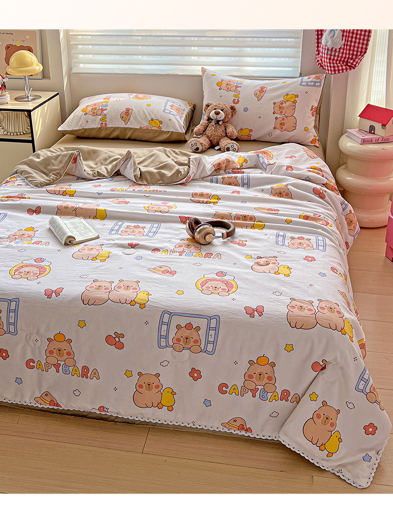 商品名称:妖妖家纺 2025新款超柔双层纱糯糯针织棉夏凉被四件套 卡皮巴拉小伙伴