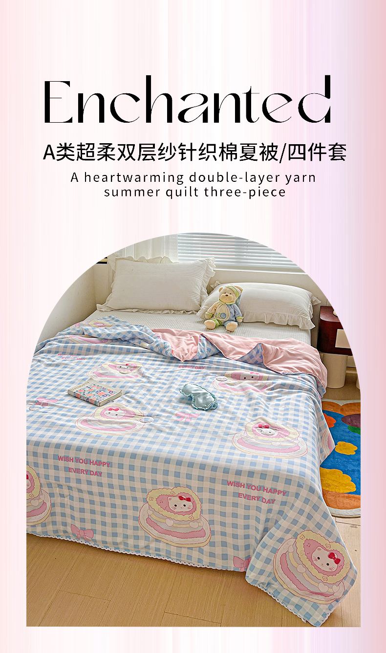 商品名称:妖妖家纺 2025新款超柔双层纱糯糯针织棉夏凉被 蛋糕猫