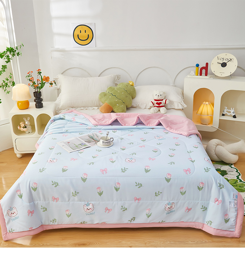 (总)中国龙 2023泡泡夏凉被空调被夏被薄款被子学生宿舍简约风被褥舒适春夏,粉色,绿色,米黄