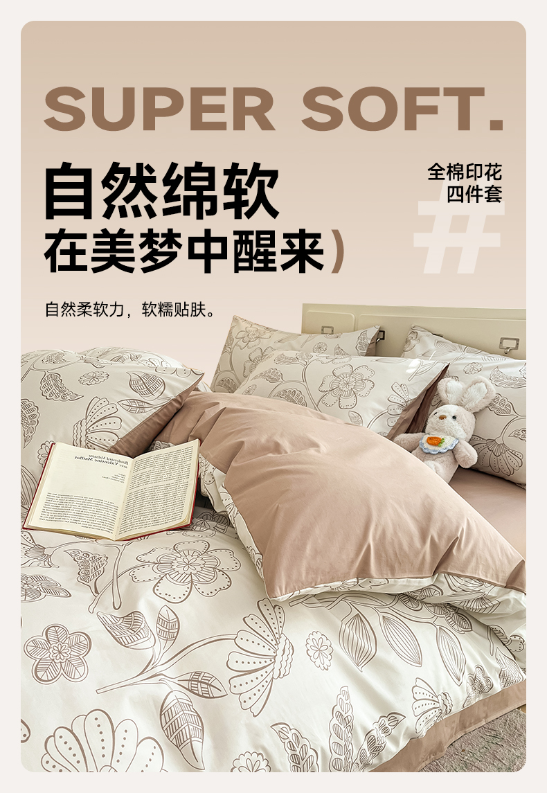 商品名称:仔仔熊 2025新款全棉印花四件套 素笔