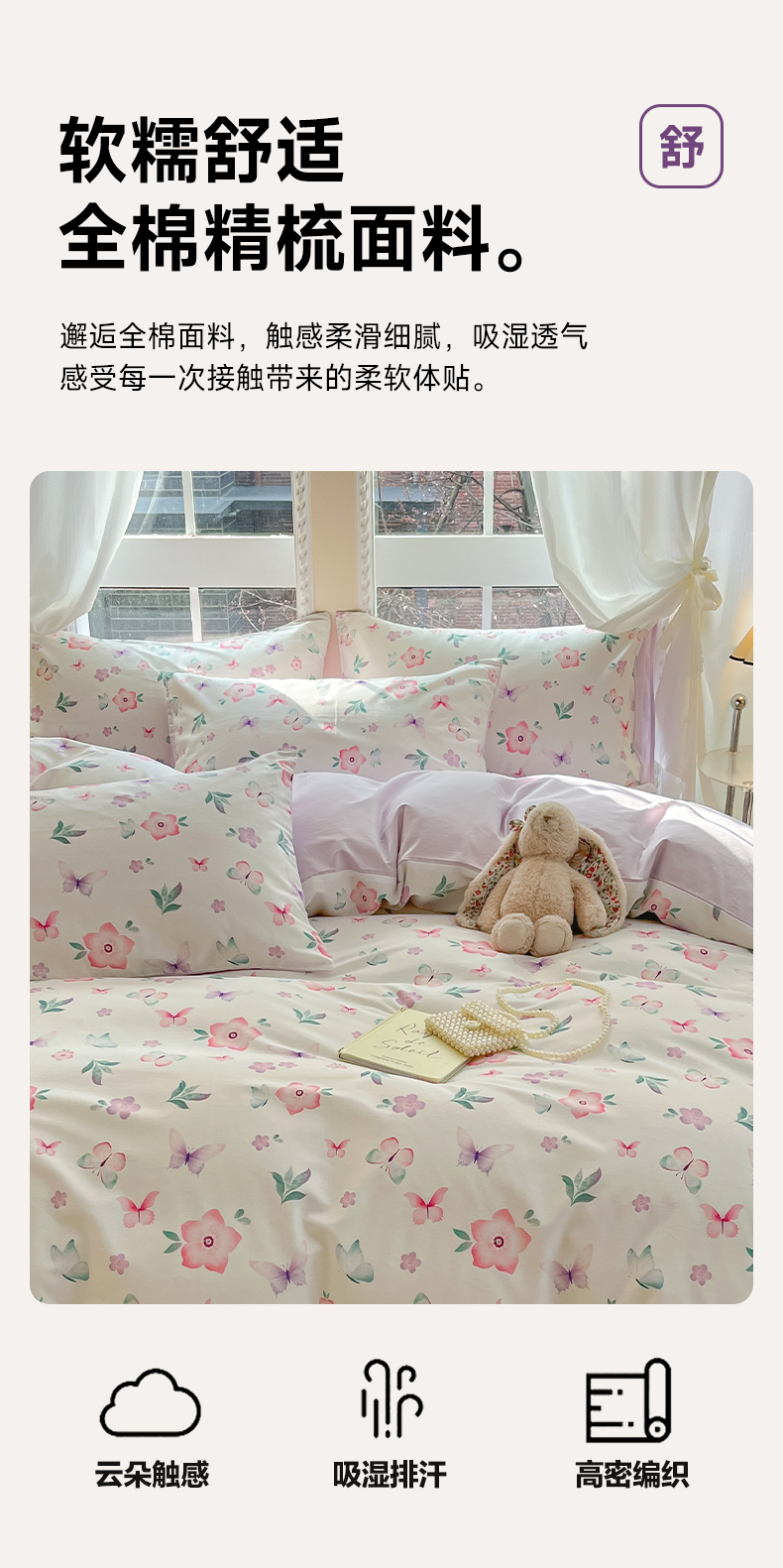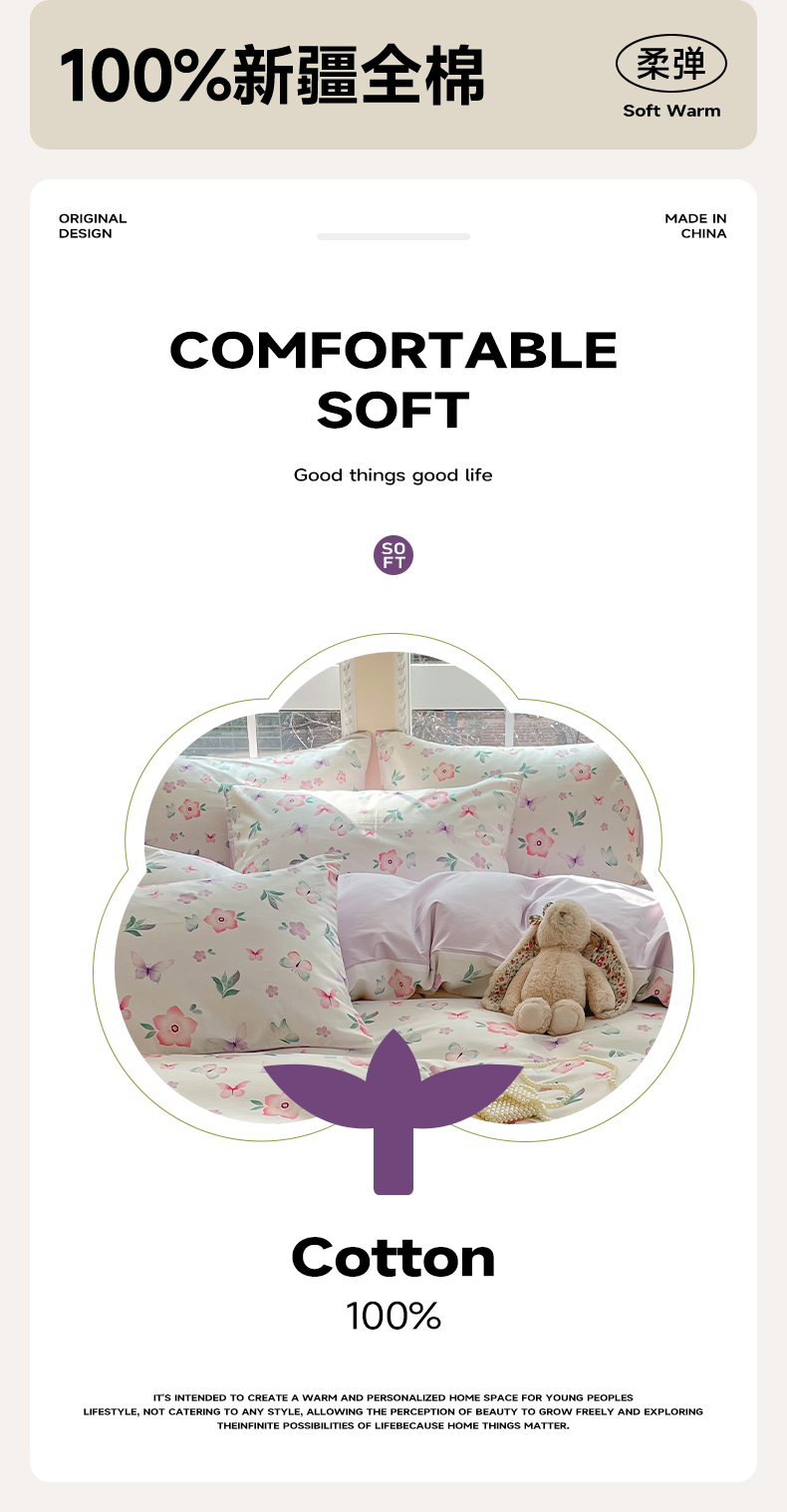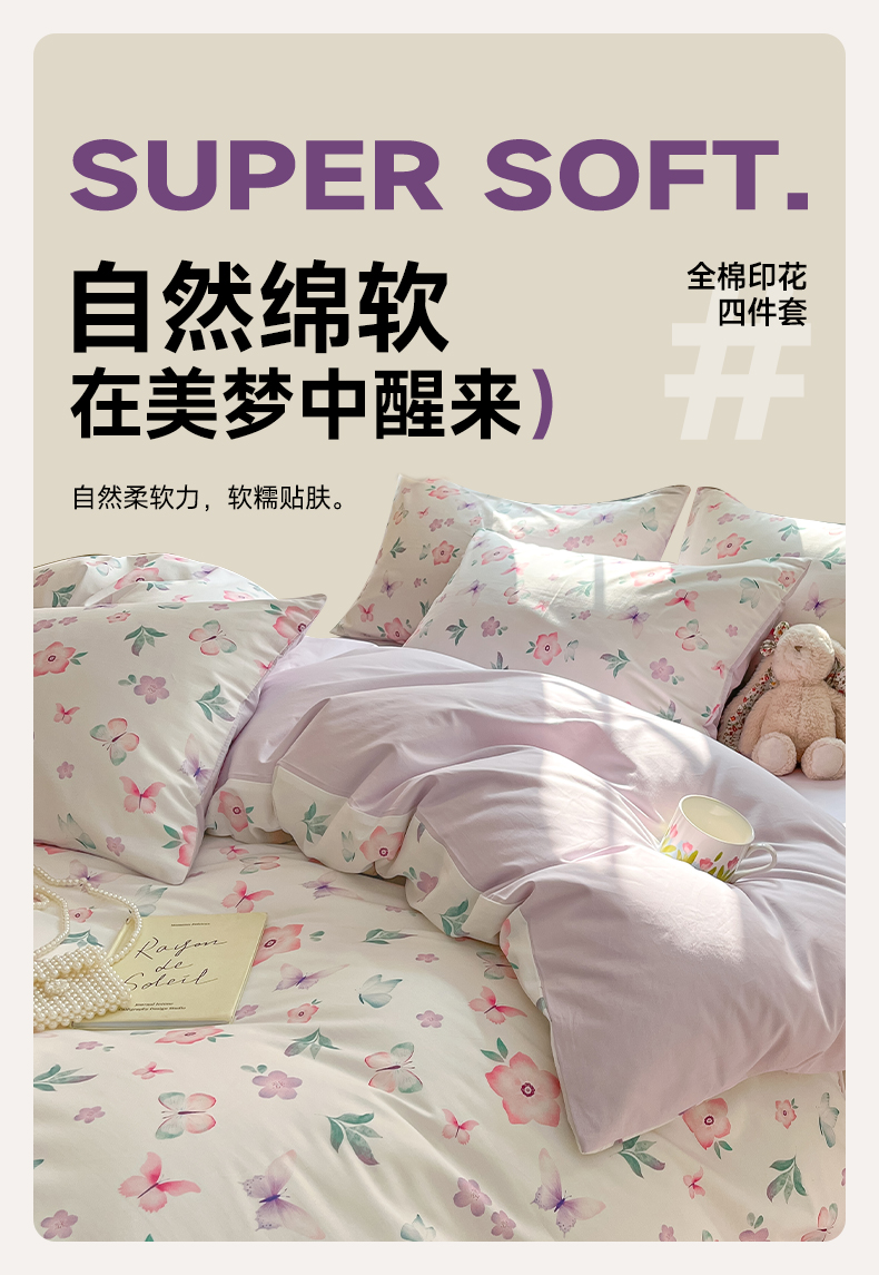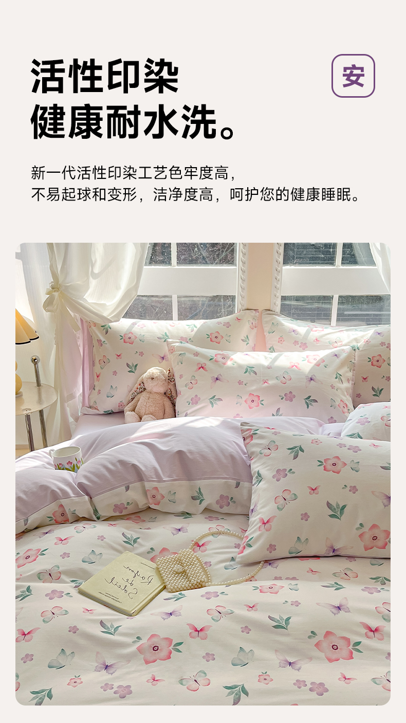 仔仔熊 2025新款全棉印花系列被套 水彩蝴蝶花