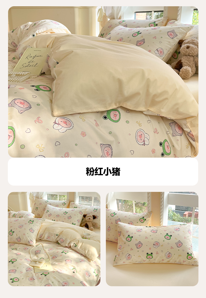 (总)仔仔熊 2025新款牛奶绒纯色双拼四件套,粉色+灰色,黄色+粉色,黄色+蓝色,黄色+绿色,灰色+橙色,卡其+咖色