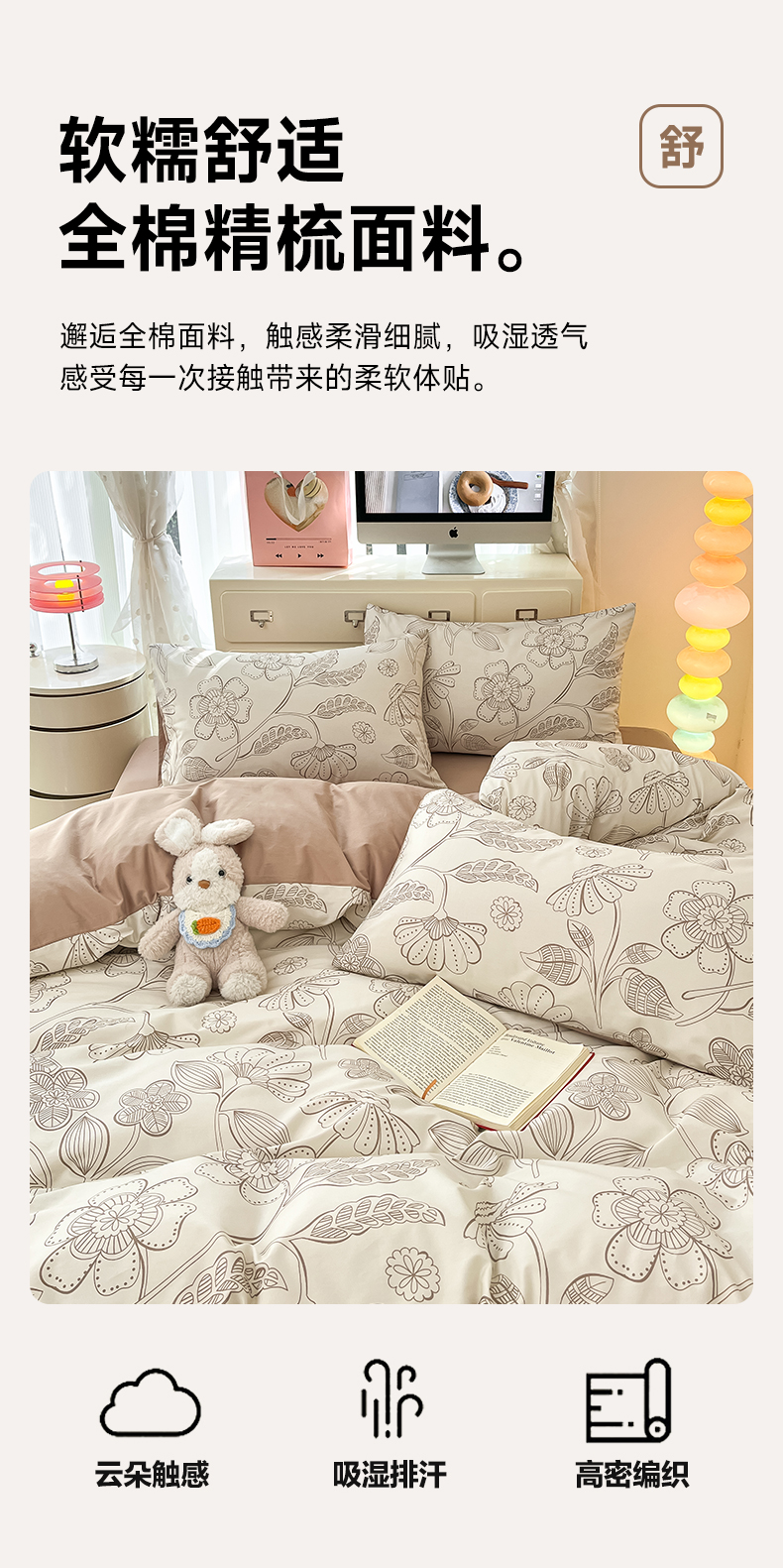 仔仔熊 2025新款全棉印花系列被套 素笔