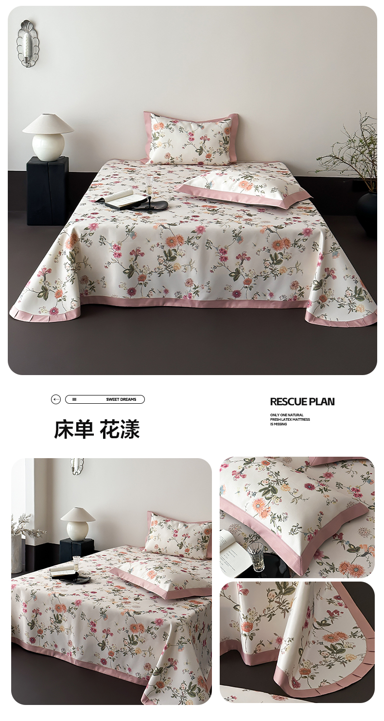 商品名称:三味舒屋 2025新款雅奢系列数码印花冰丝床单凉席三件套 床单 花漾