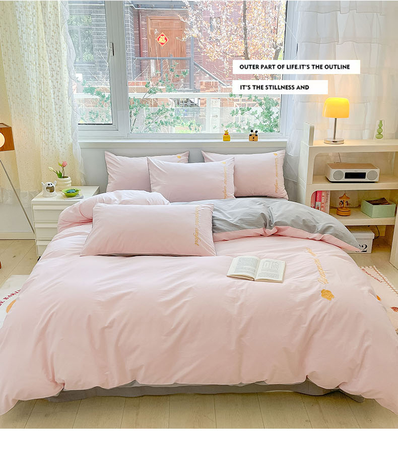 当前位置: 91家纺网 > 商品网购 > 床品套件 > 四件套 > 全棉普通四件套 > 禧澜庭 2025新款纯棉全棉斜纹四件套刺绣绣花款春小清新三件套-幸运花 幸运花-优雅粉+中灰