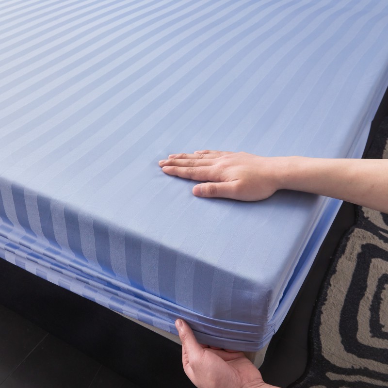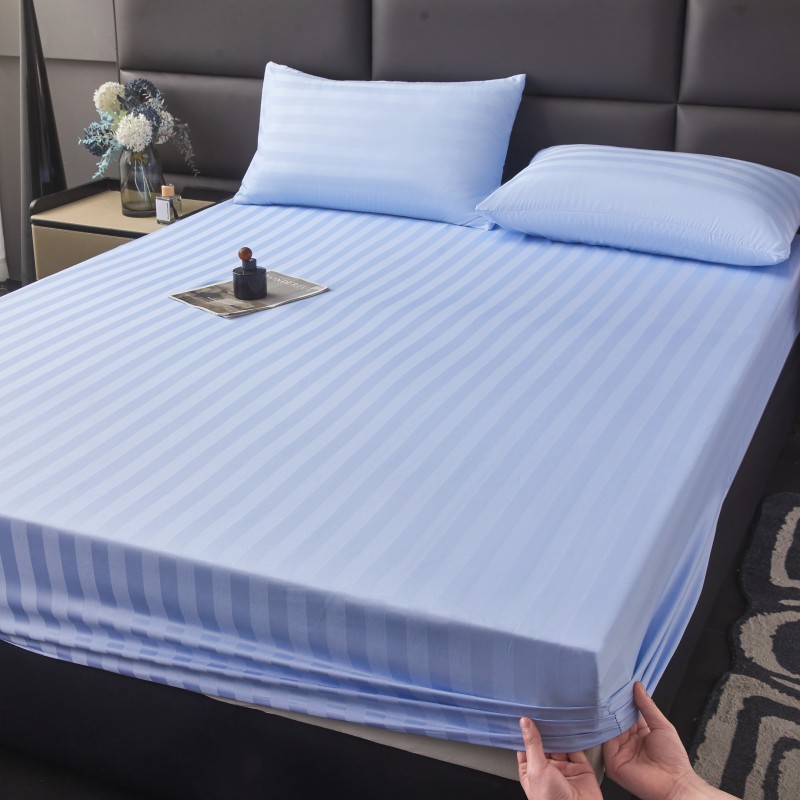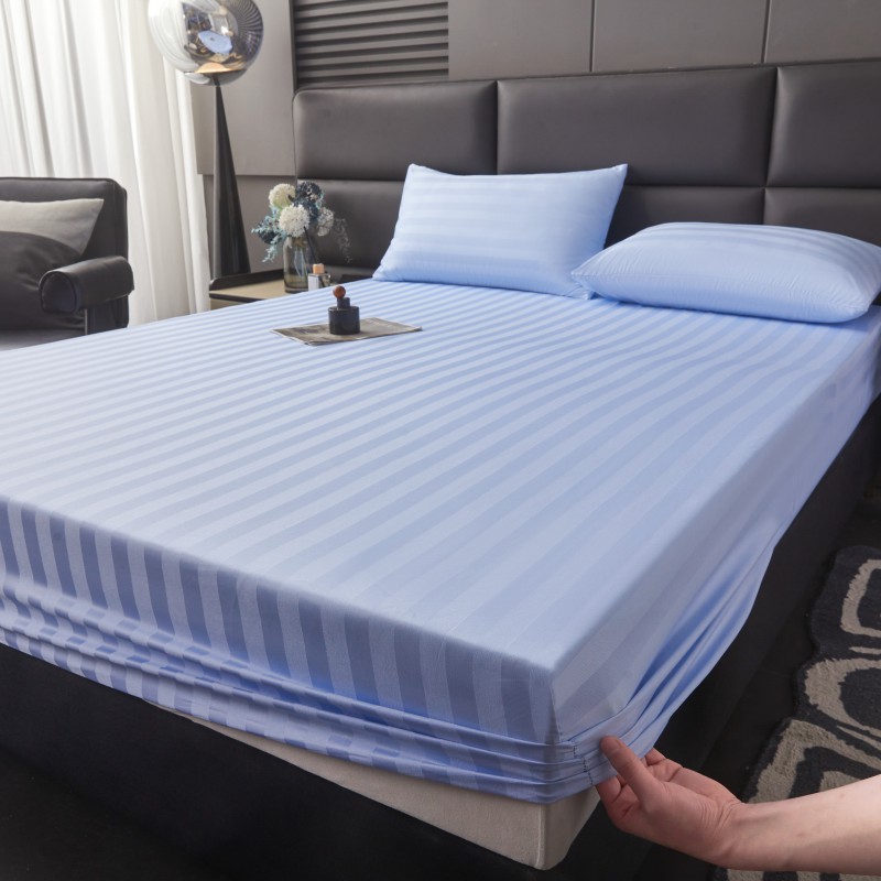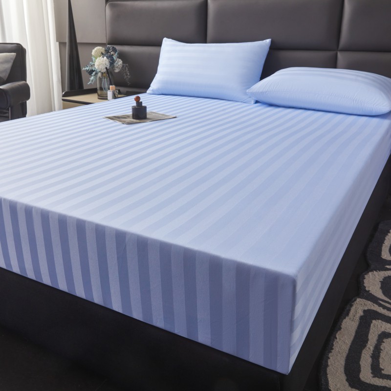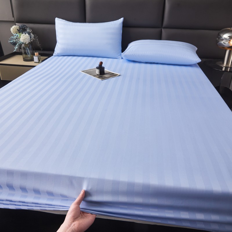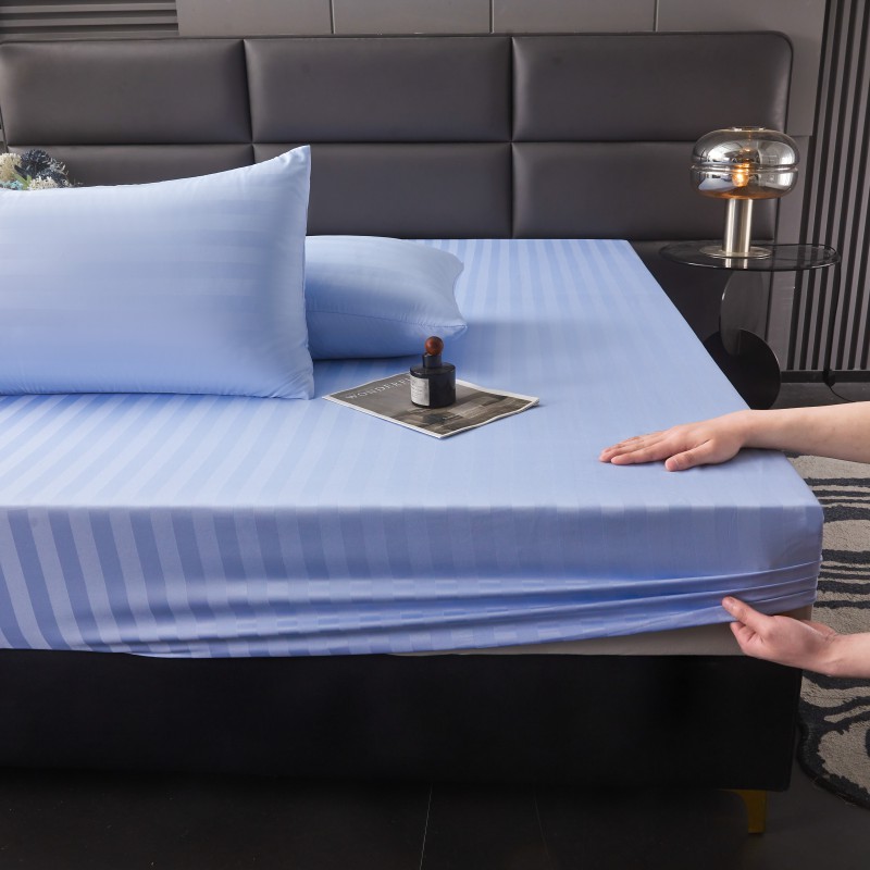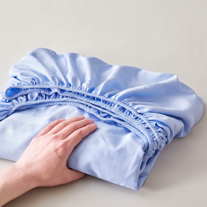 商品名称:2025新款DT系列缎条制造工艺色丁光泽感凉感床笠 DT-淡蓝