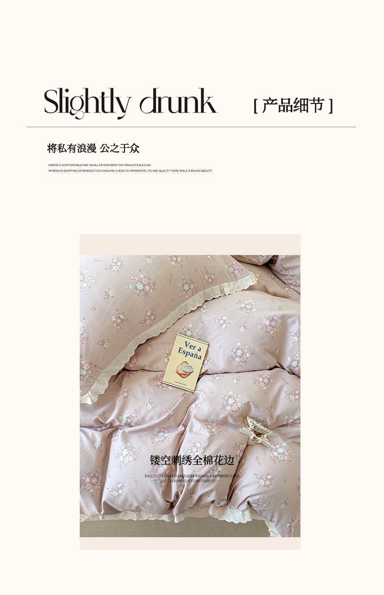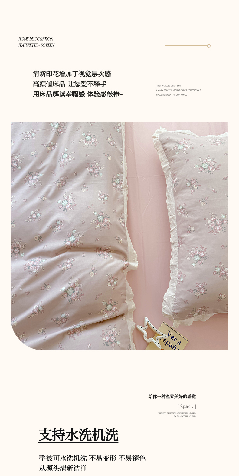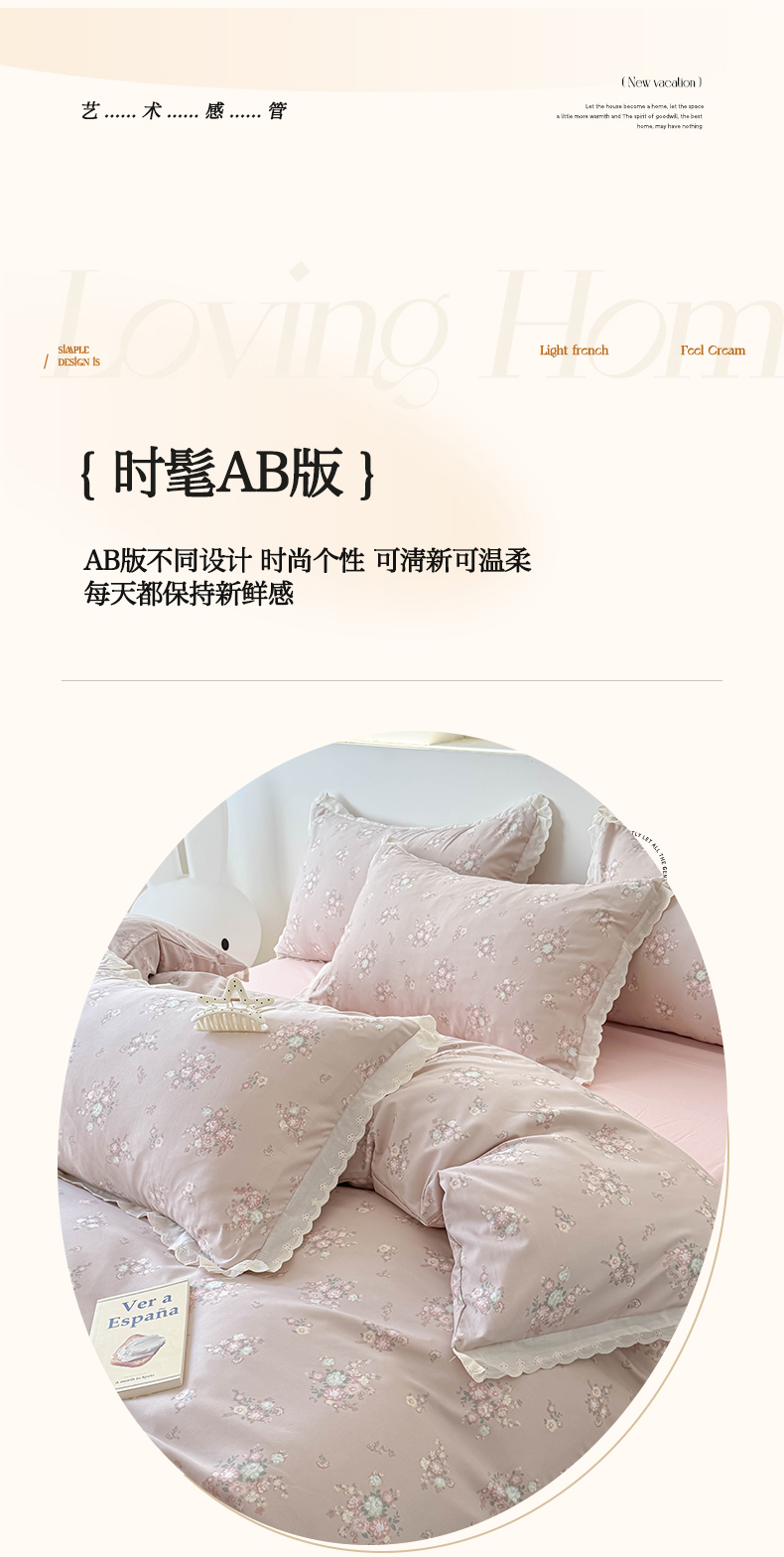 商品名称:吾欢心 2025新款韩版花边水洗双层纱四件套夏被四件套(棚拍图) 海棠花开