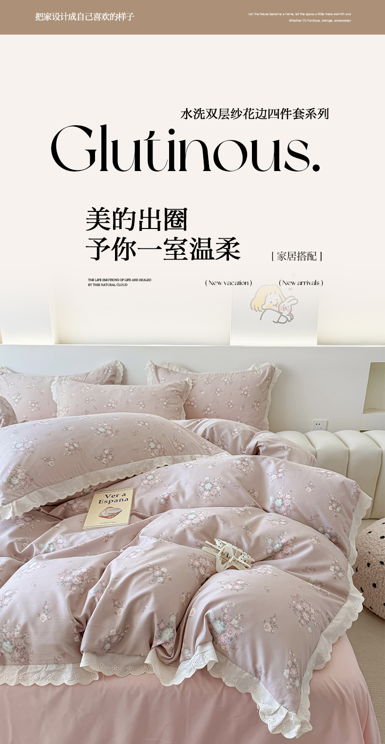 (总)吾欢心 2025新款针织棉双层纱四件套提供买家秀,白茶茉莉,薄雾玫瑰,抱抱熊,波点蝴蝶结,彩色波点,草莓啵啵,繁花,格调,狗狗乐园,海棠花开,花影迷踪,可爱小兔,萌系新宠,梦里,奶萌小狗,童年木马,玩具熊,小樱桃,星空蝶舞咖,星空蝶舞紫,樱桃蝴蝶结,紫葡萄,紫韵