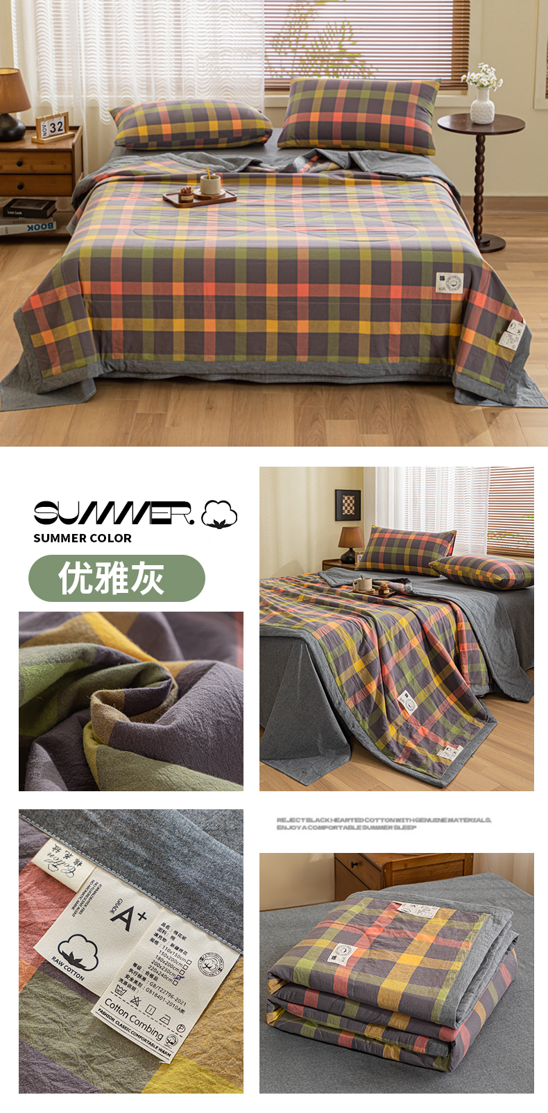 当前位置: 91家纺网 > 商品网购 > 被子 > 夏被 > 鑫棉坊 2025新款全棉色织水洗棉A类棉花夏被可机洗空调被四件套床单枕套 优雅灰