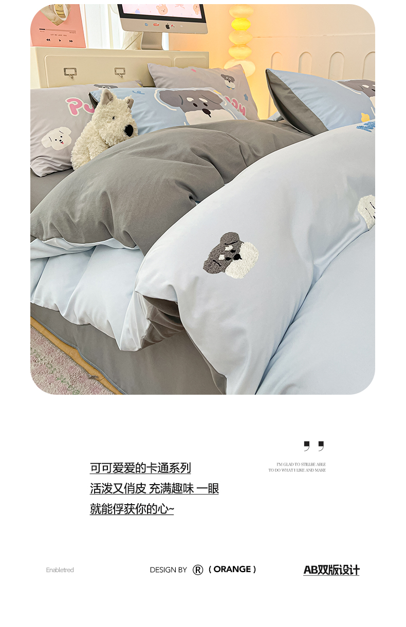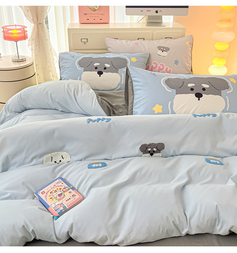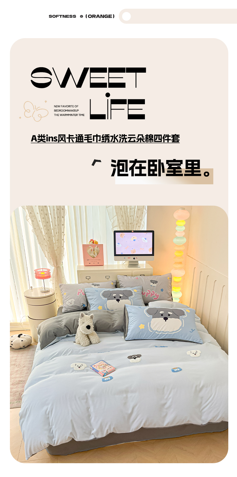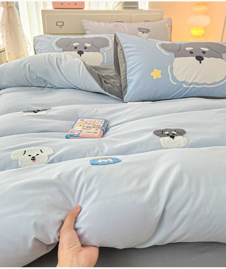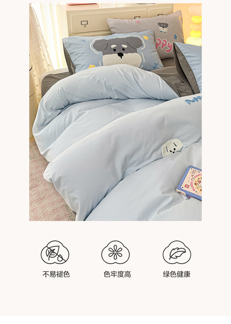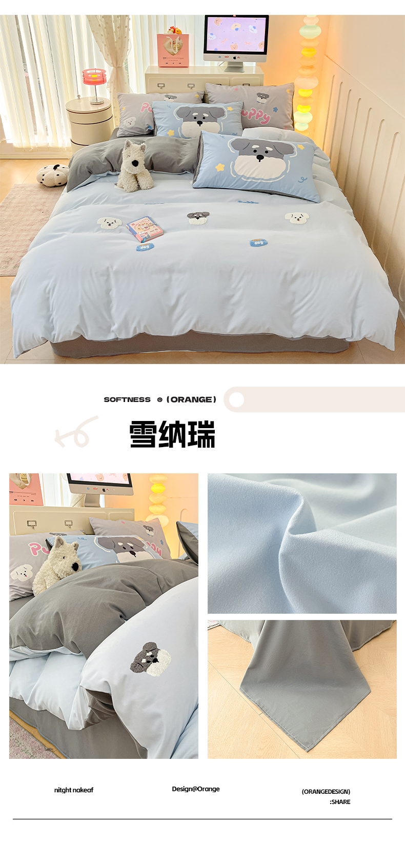 商品名称:如一 2025新款A类数码枕套卡通毛巾绣水洗棉四件套 雪纳瑞