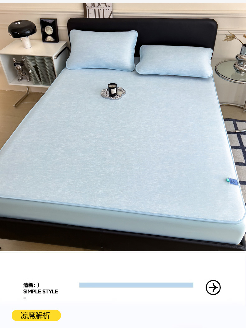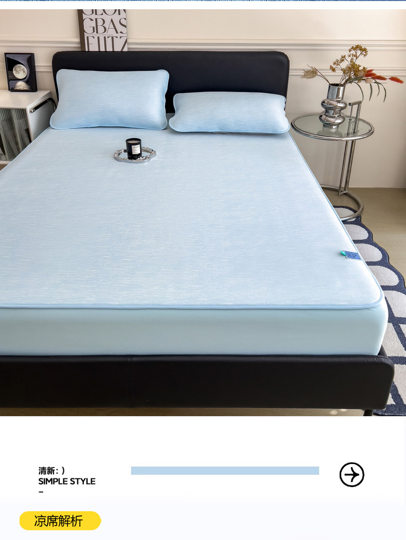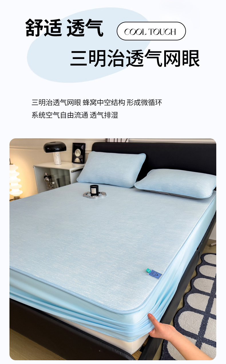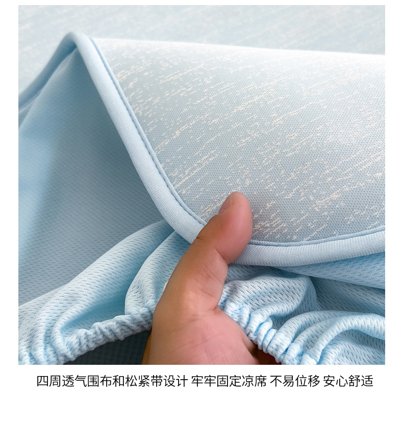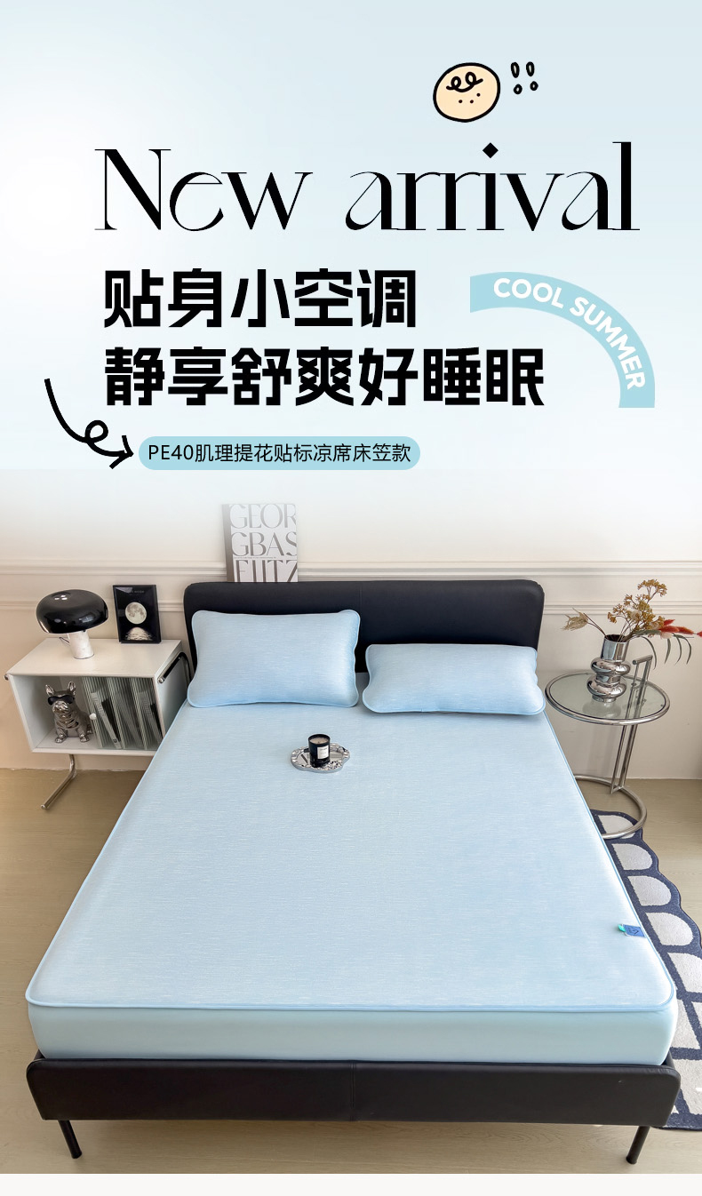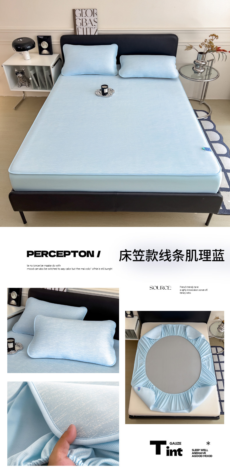 倾慕家纺 2025新款PE40肌理提花贴标席子凉席-床笠款 线条肌理蓝床笠款