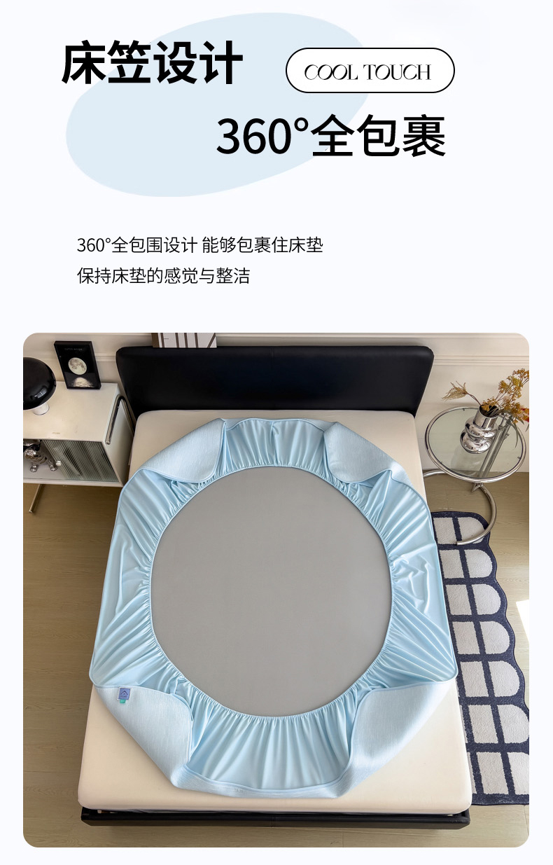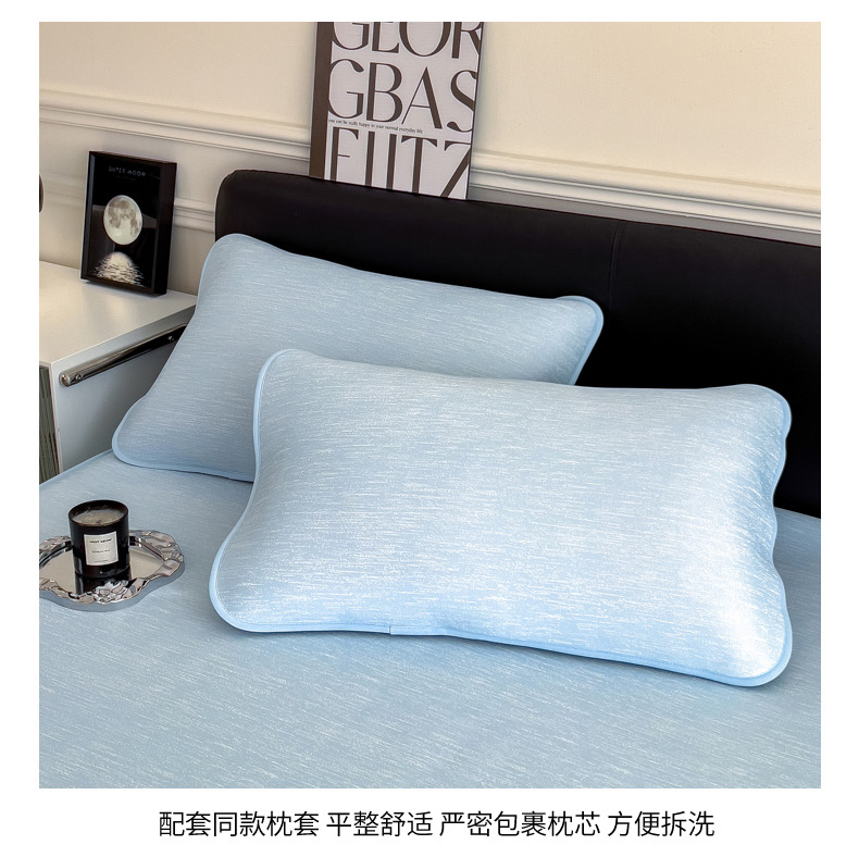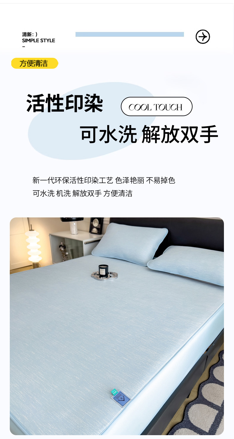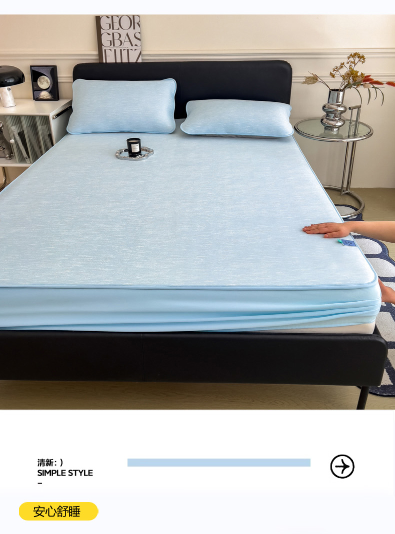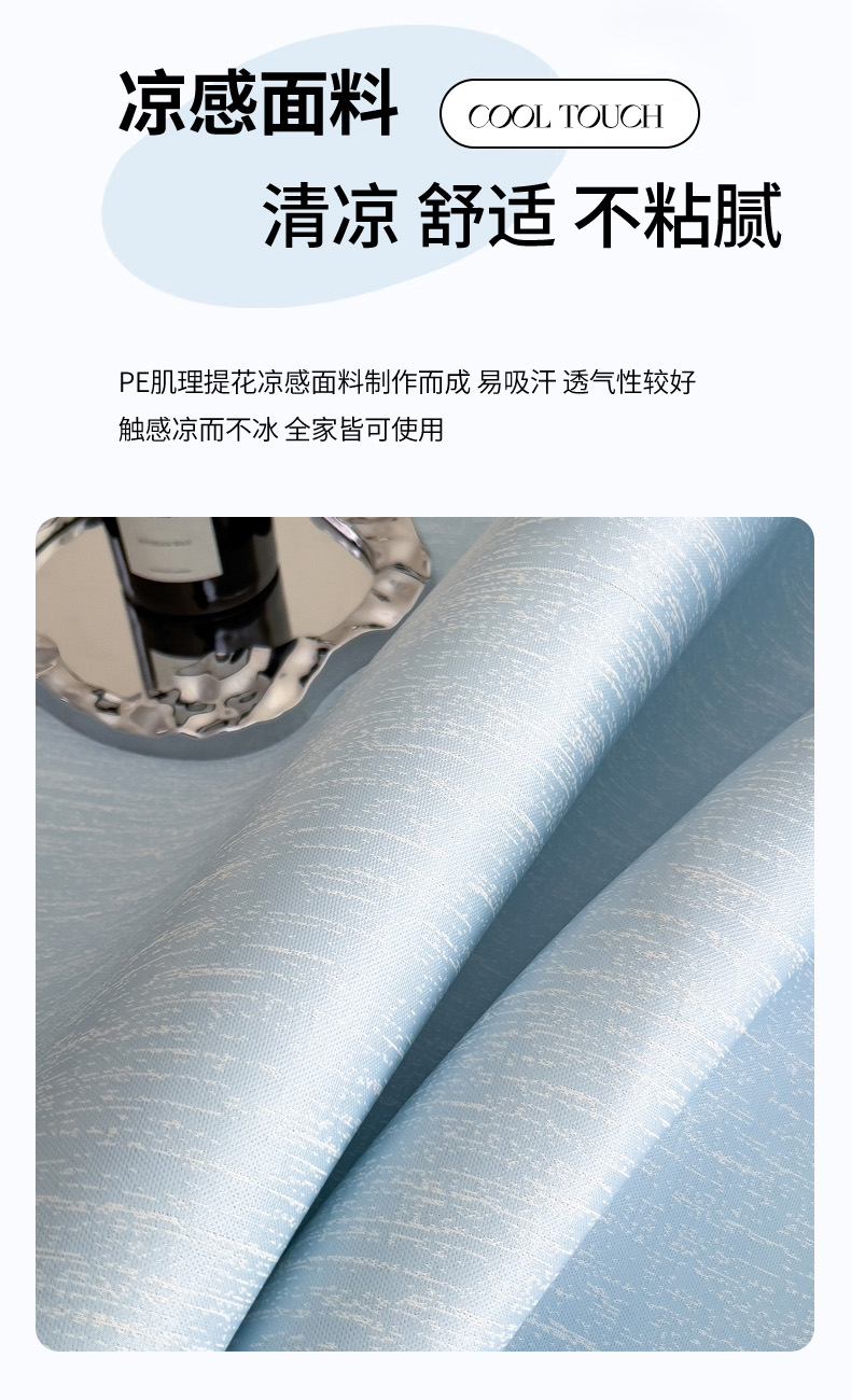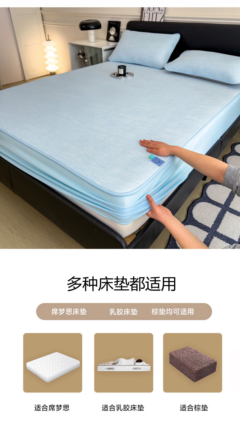 倾慕家纺 2025新款PE40肌理提花贴标席子凉席-床笠款 线条肌理蓝床笠款