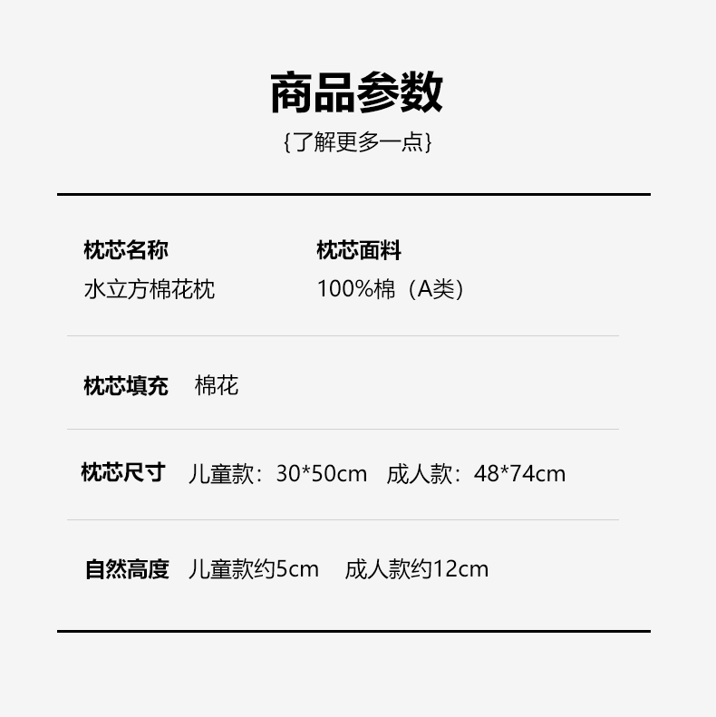 商品名称:(总)乐可 2025新款水立方棉花枕 儿童枕成人枕枕头枕芯