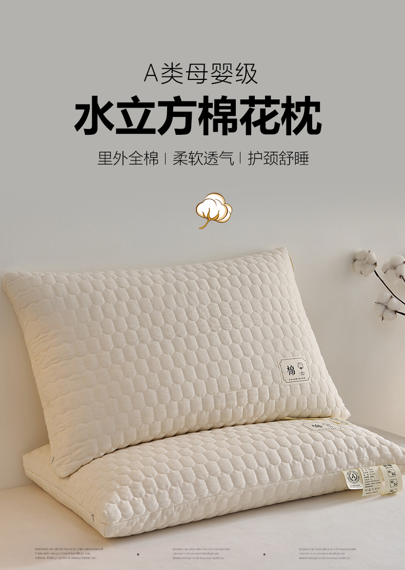 (总)乐可 2025新款水立方棉花枕 儿童枕成人枕枕头枕芯
