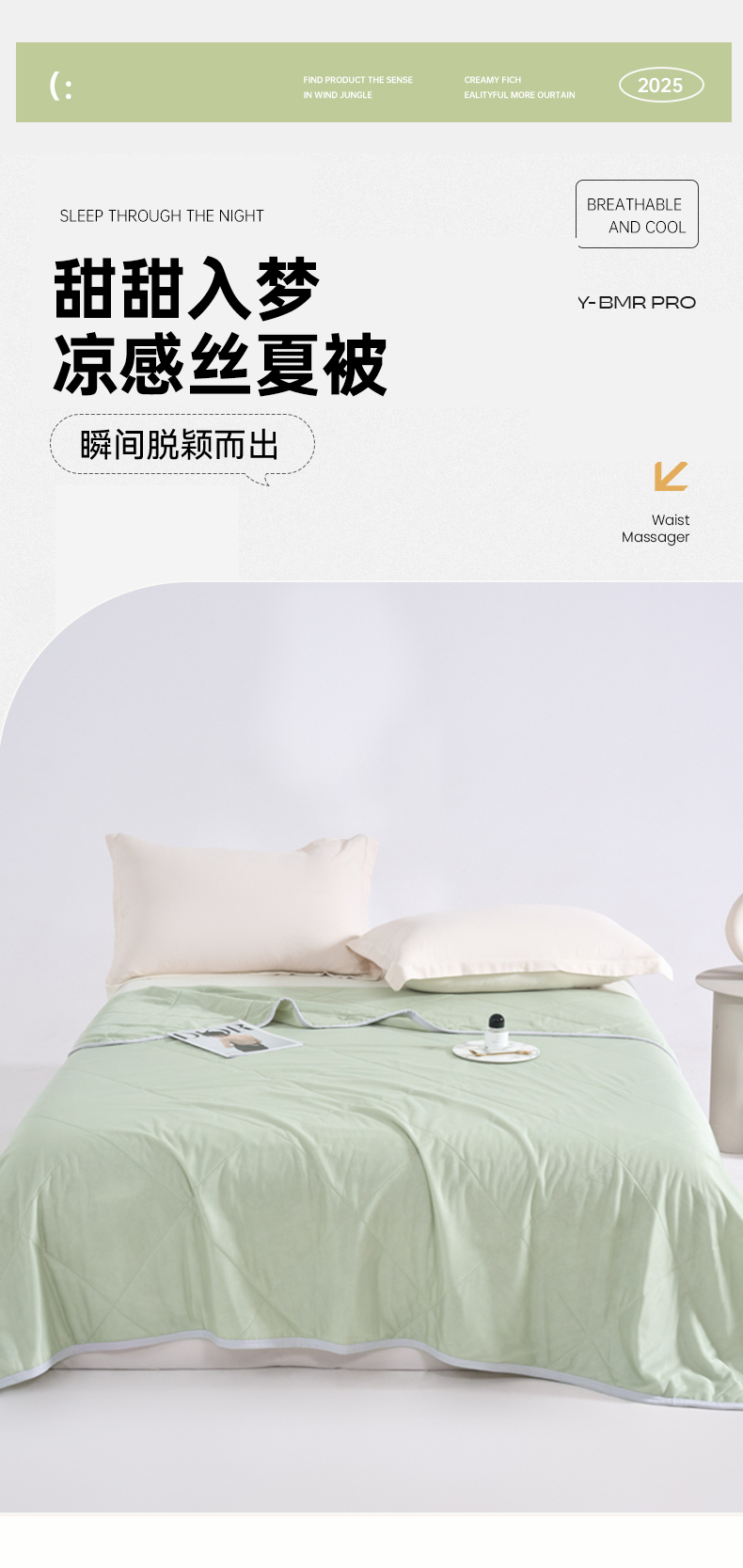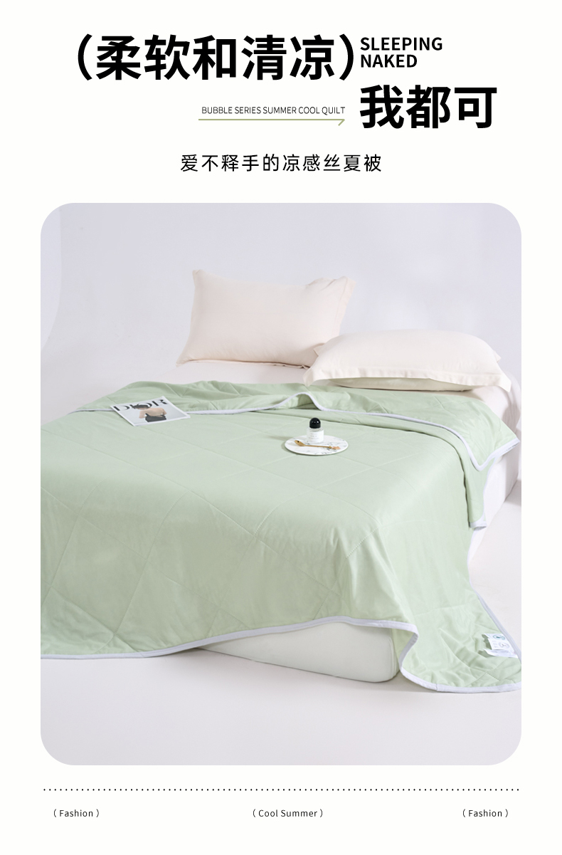 晚爱 2025A类氨纶凉感天丝夏被纯色印花冰淇淋夏凉被可机洗空调被 CS果绿