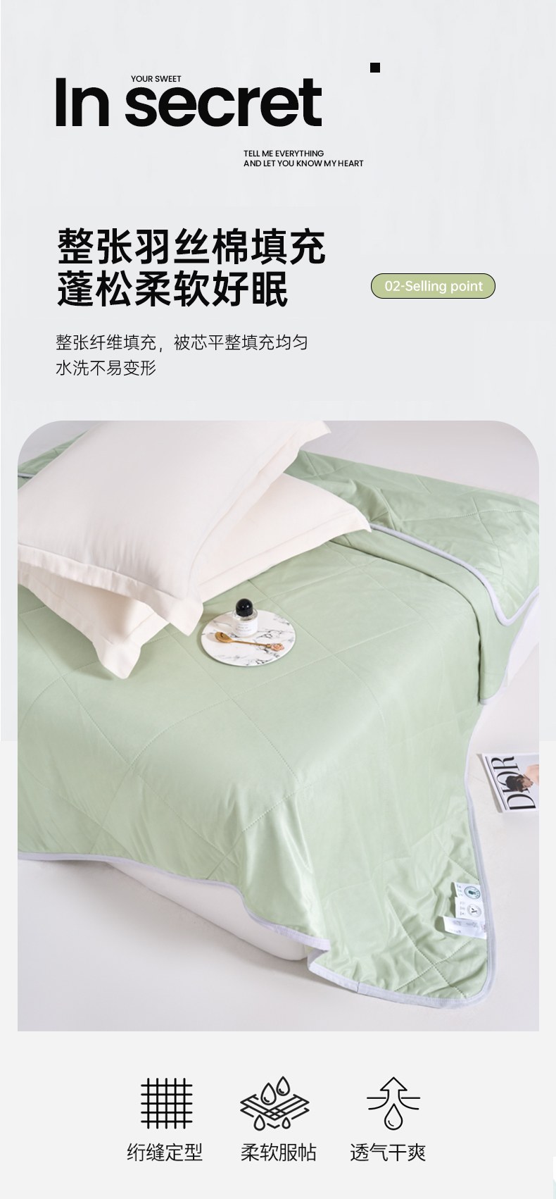 商品名称:晚爱 2025A类氨纶凉感天丝夏被纯色印花冰淇淋夏凉被可机洗空调被 CS果绿