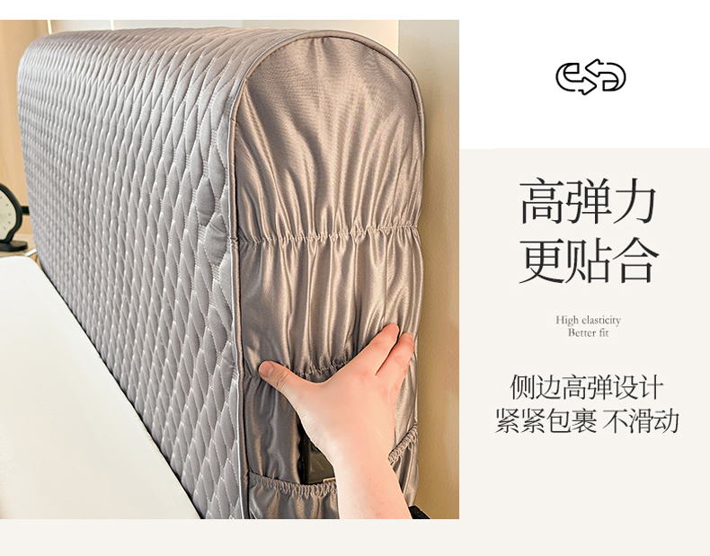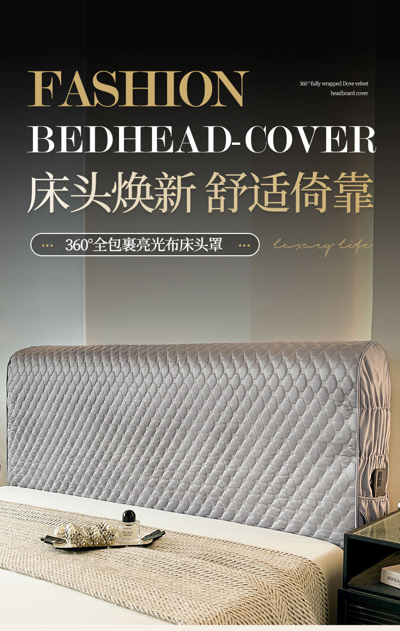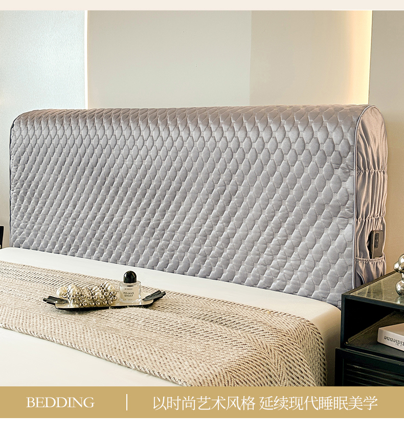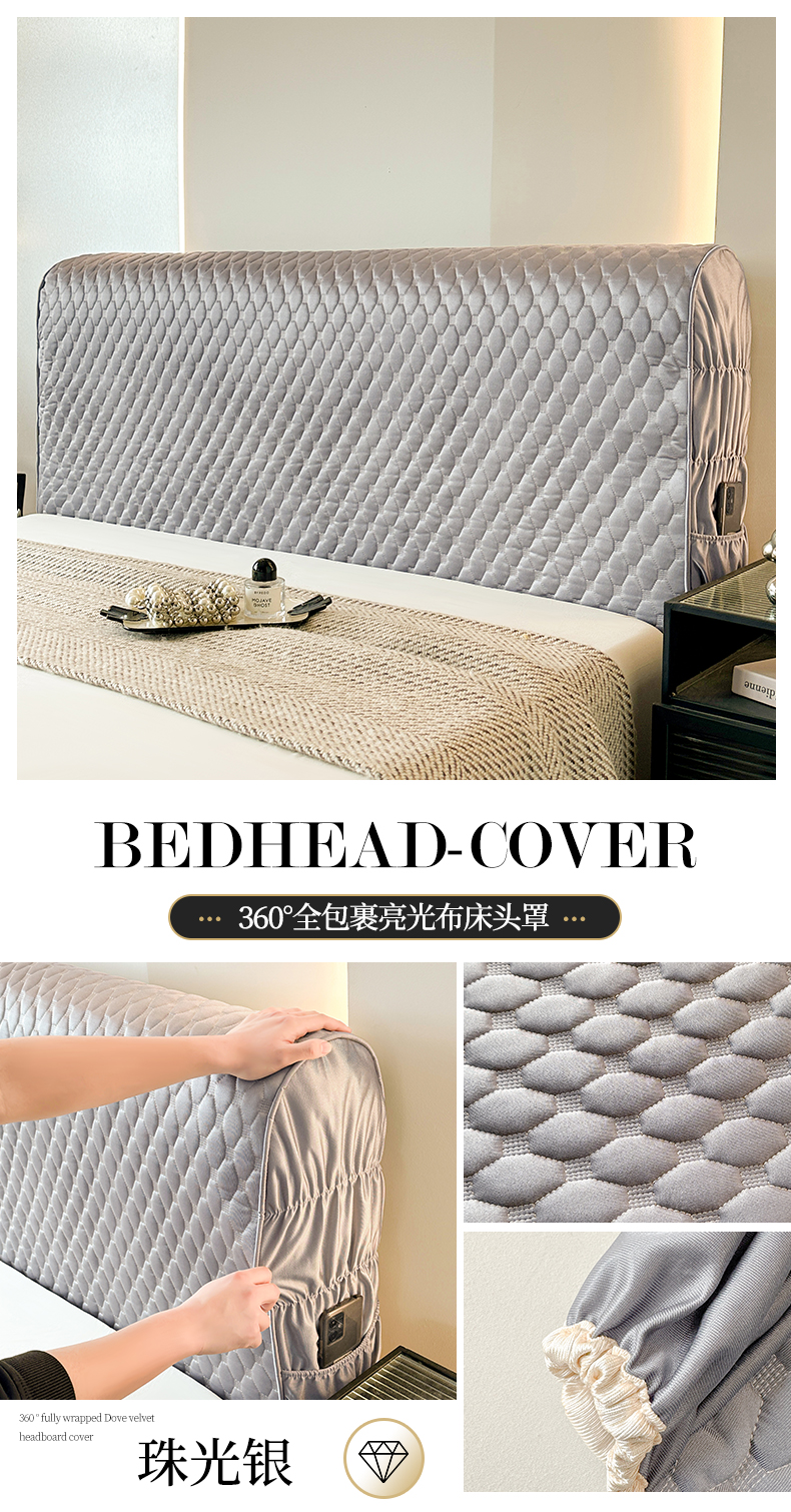 情恒家纺 2025夏季款亮光布加厚双面用床头罩 珠光银