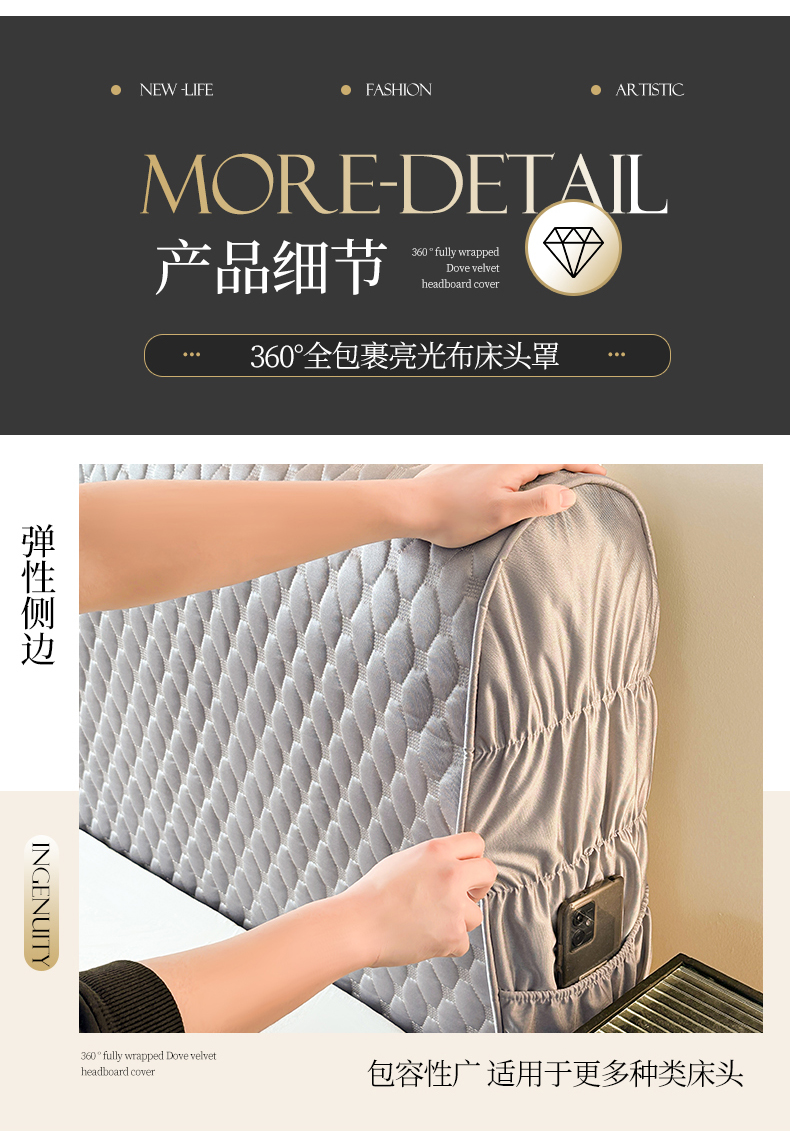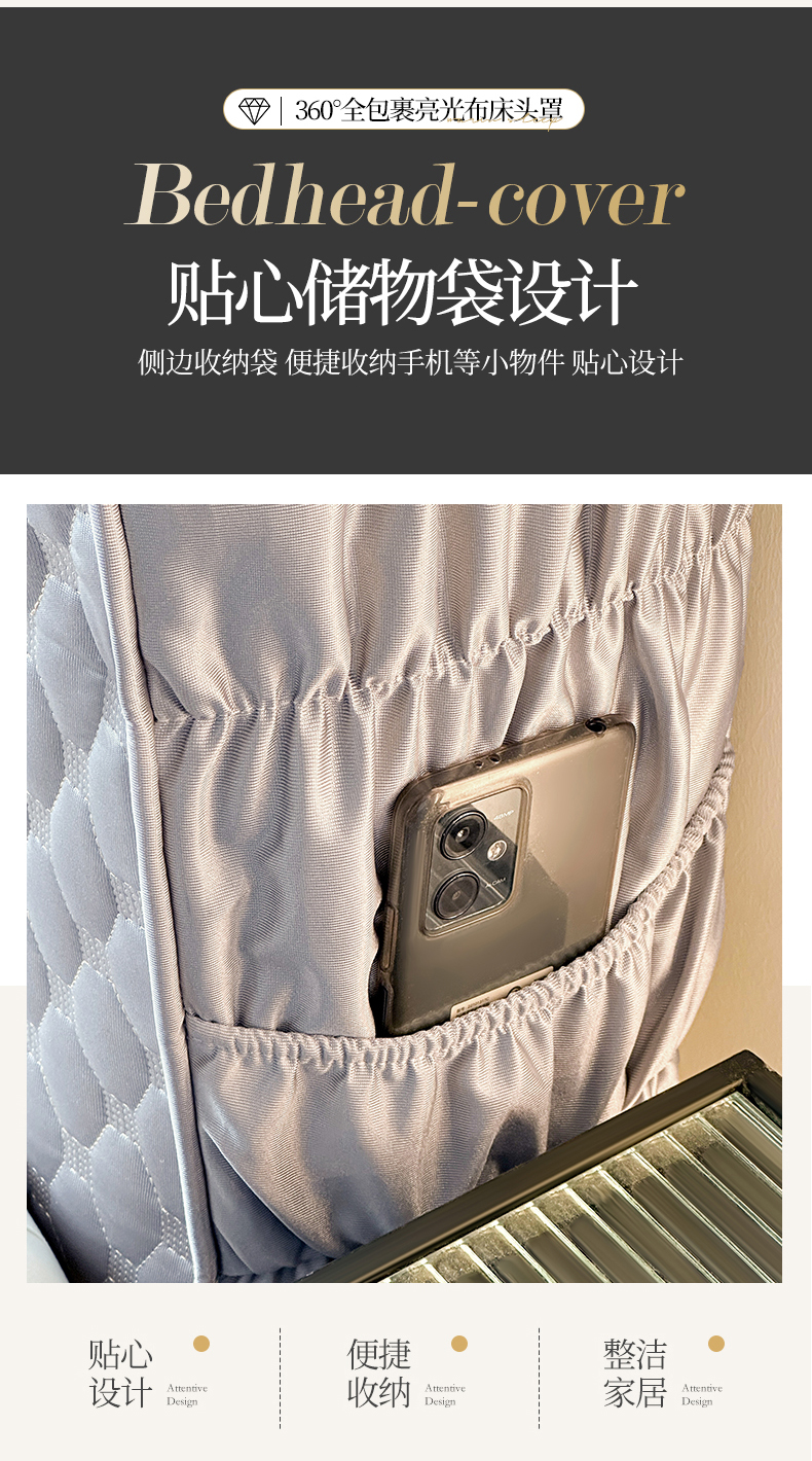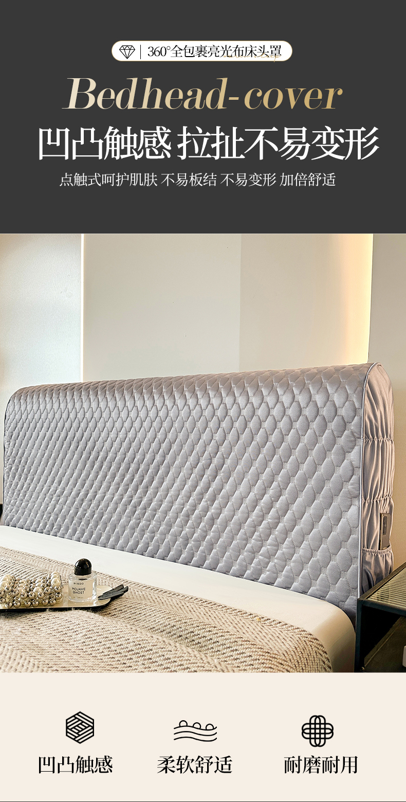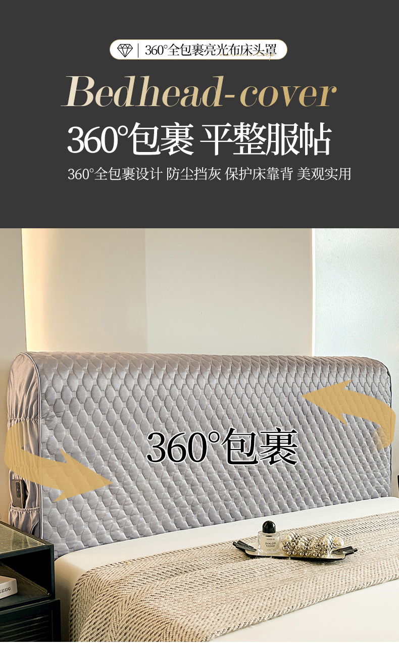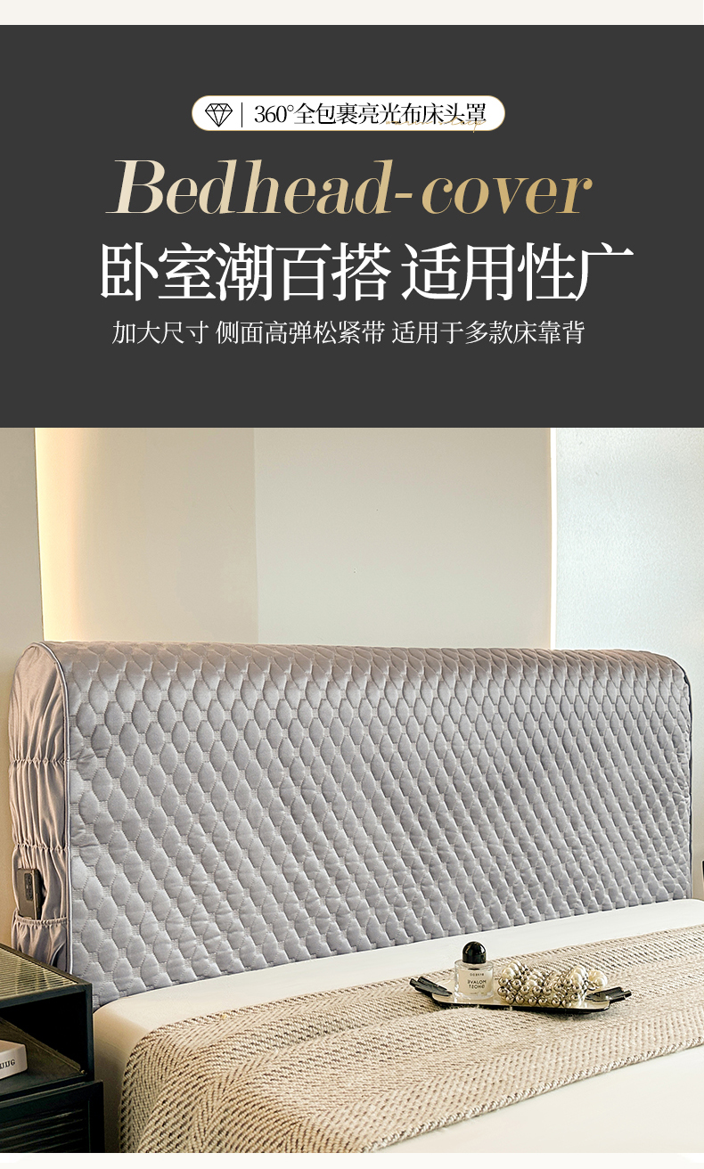• 91家纺网 家纺一手货源 找家纺 情恒家纺 2025夏季款亮光布加厚双面用床头罩 珠光银