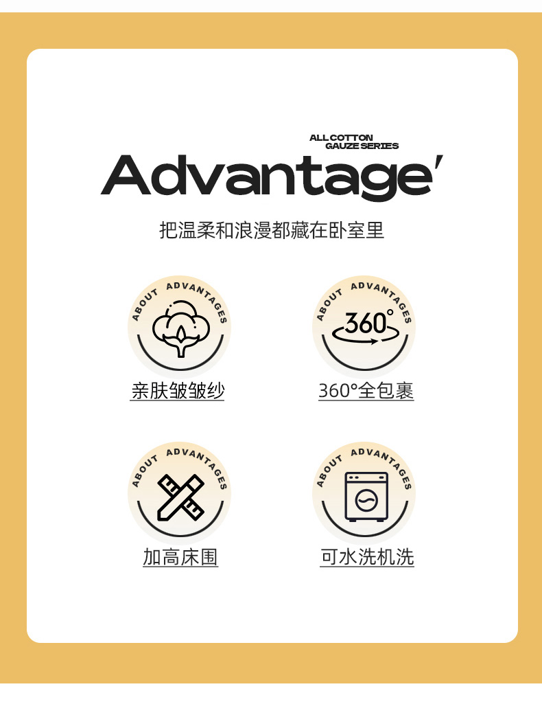 商品名称:(总)眠帛家居 2025新款A类水洗皱皱纱印花床笠