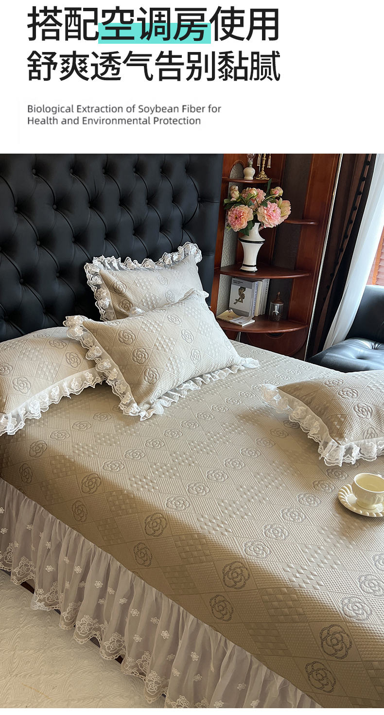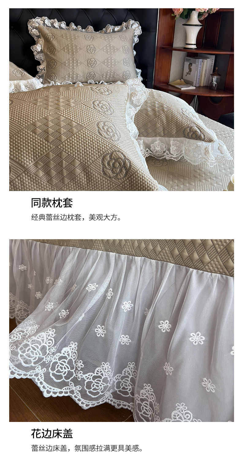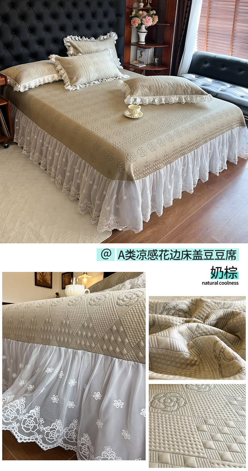 商品名称:网红馆(ck家纺) 2025新款A类凉感花边豆豆席凉席床盖三件套--瑞莎 奶棕