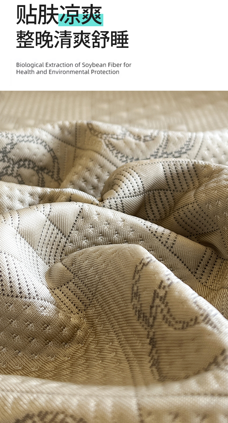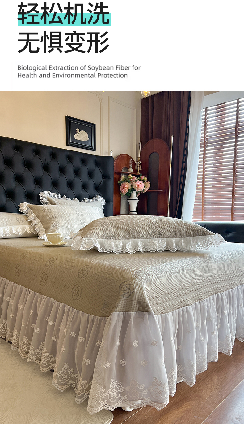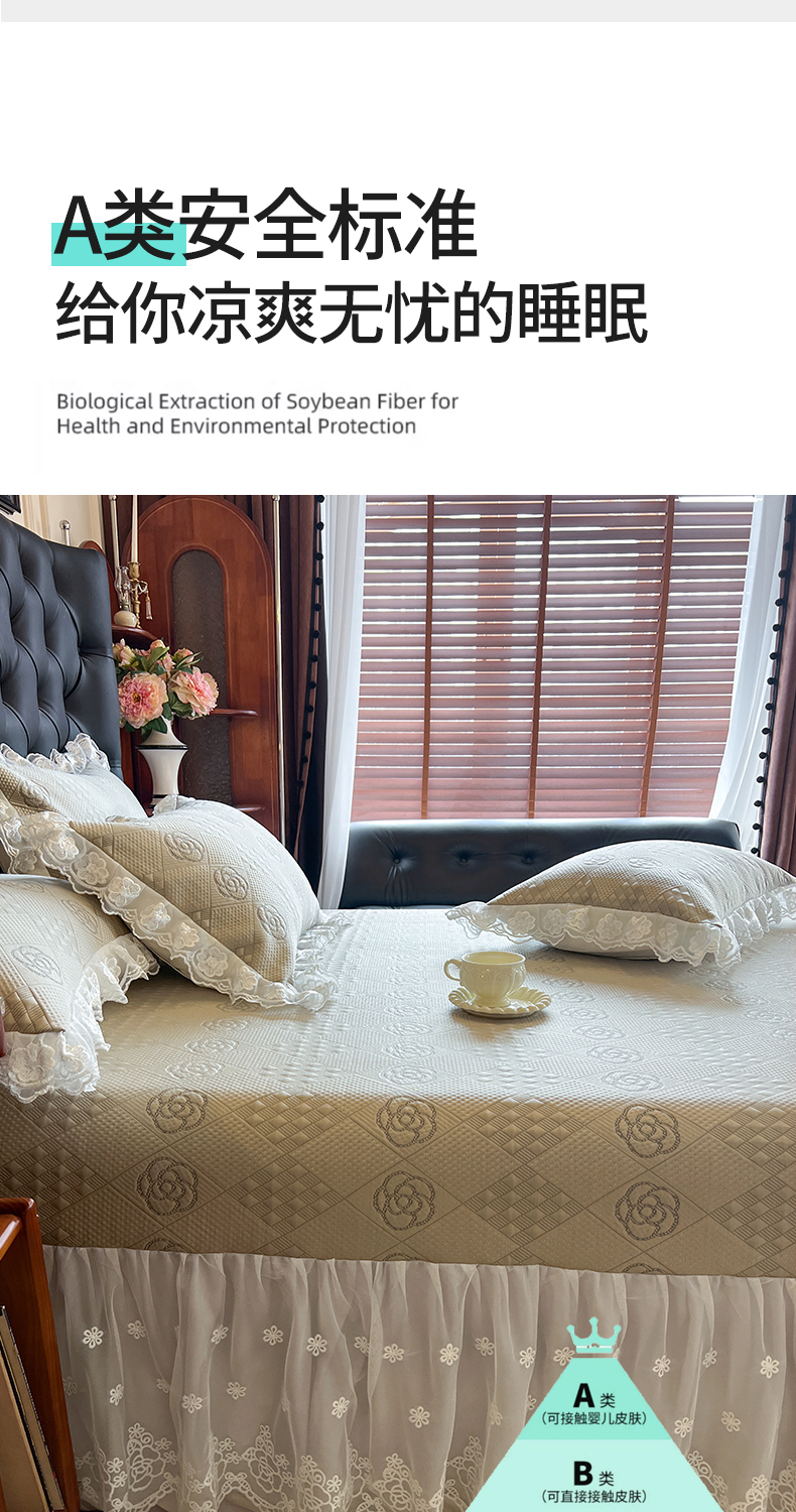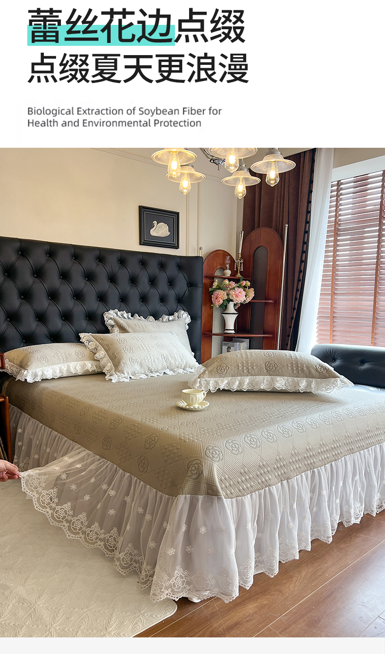 商品名称:网红馆(ck家纺) 2025新款A类凉感花边豆豆席凉席床盖三件套--瑞莎 奶棕