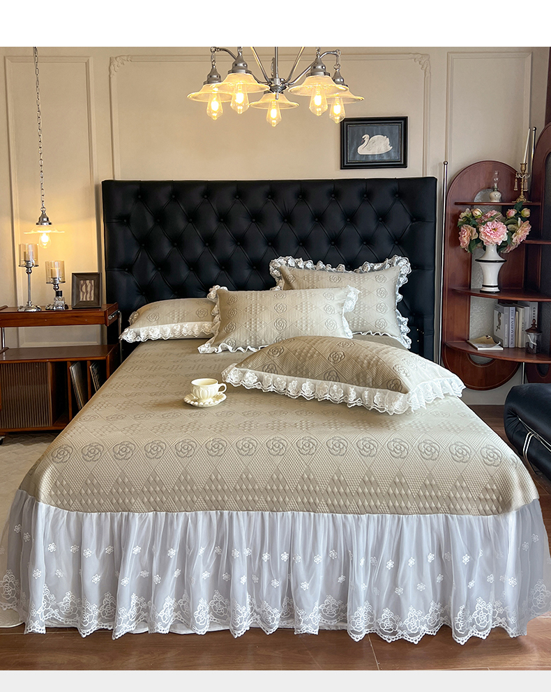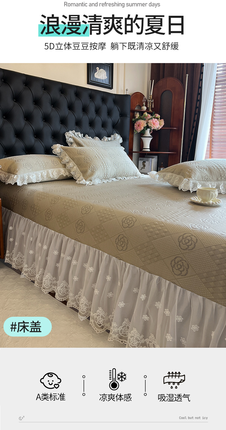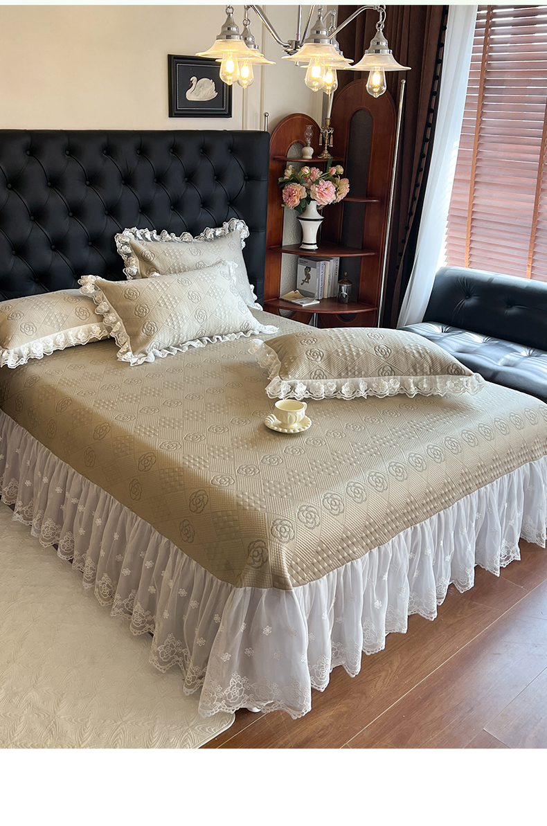 网红馆(ck家纺) 2025新款A类凉感花边豆豆席凉席床盖三件套--瑞莎 奶棕